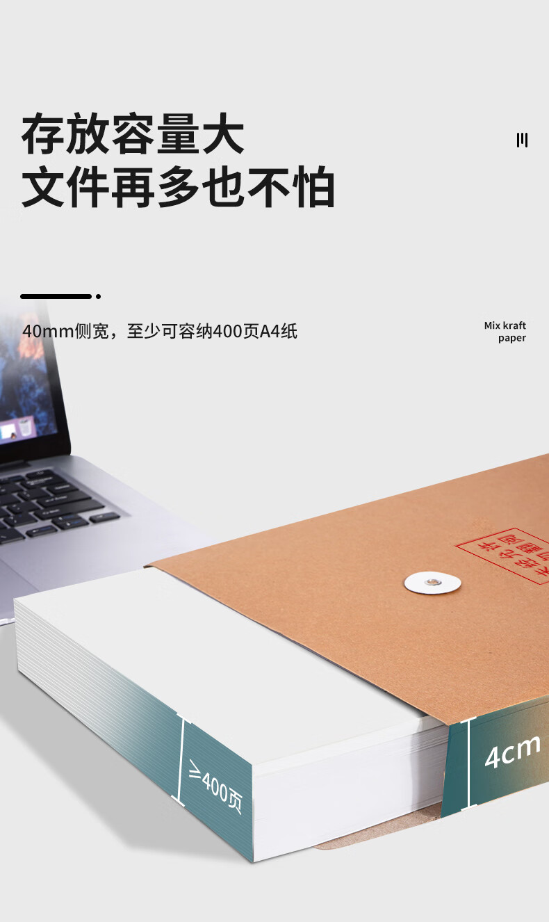 西玛/SIMAA 5952 文件袋 A4混浆175g牛皮纸档案袋 侧宽4cm 标书合同文件资料袋