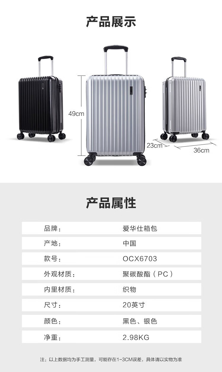 爱华仕/OIWAS OCX6703 旅行箱 拉杆箱 时尚登机行李箱商务旅行密码箱 20英寸 OCX6703银色
