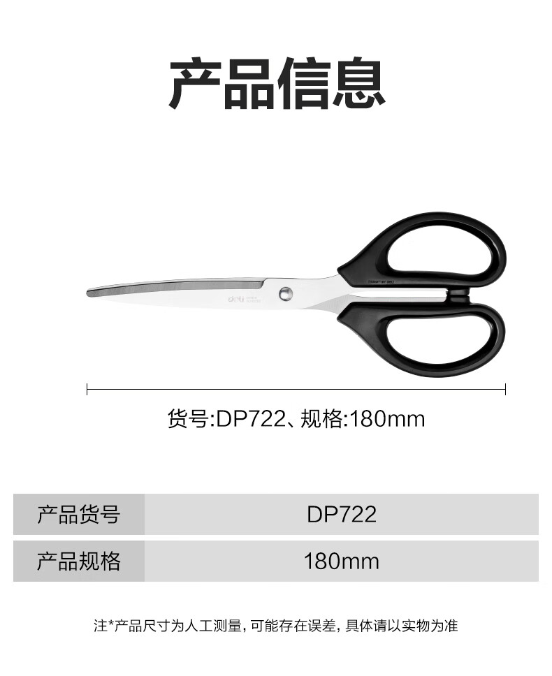 得力/deli DP722 剪刀 不锈钢剪刀 DP722 180mm 黑 1把