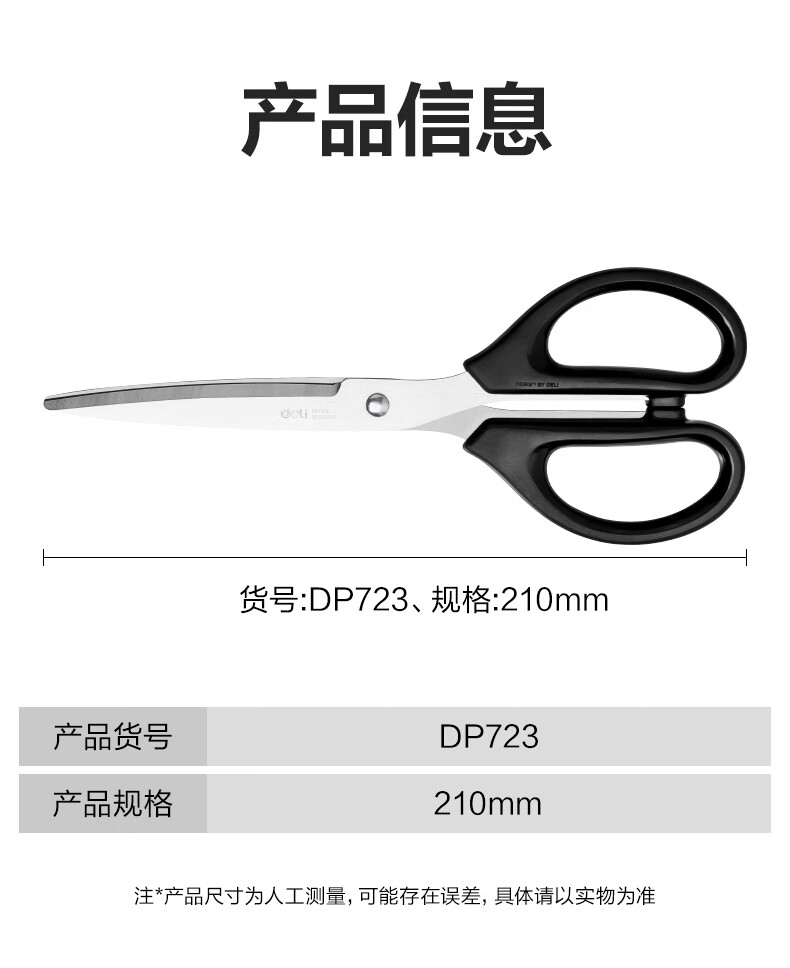 得力/deli DP723 剪刀 不锈钢剪刀 DP723 210mm 黑 1把