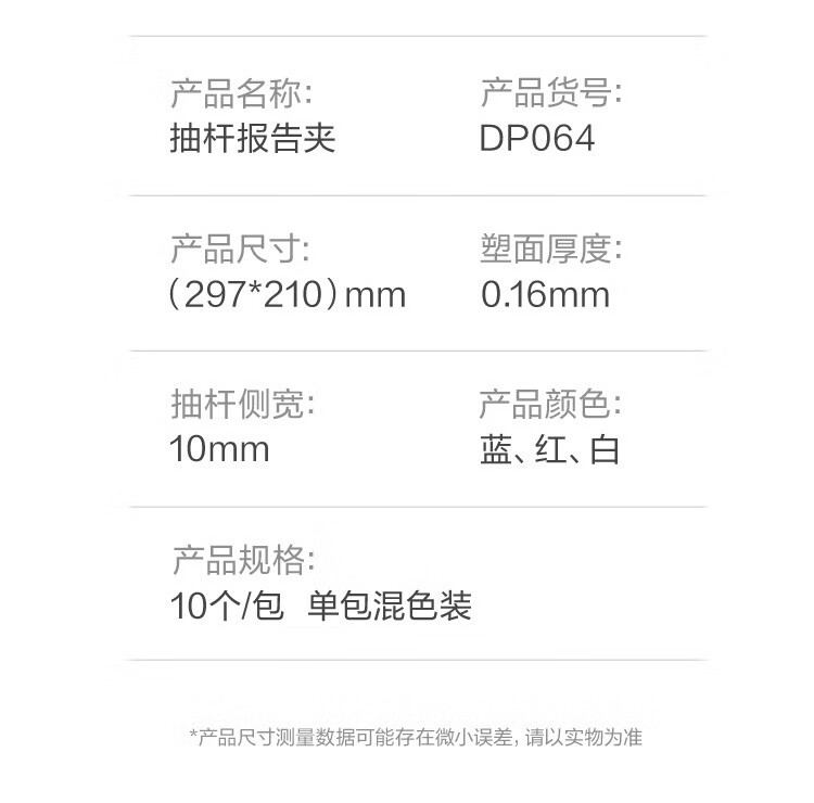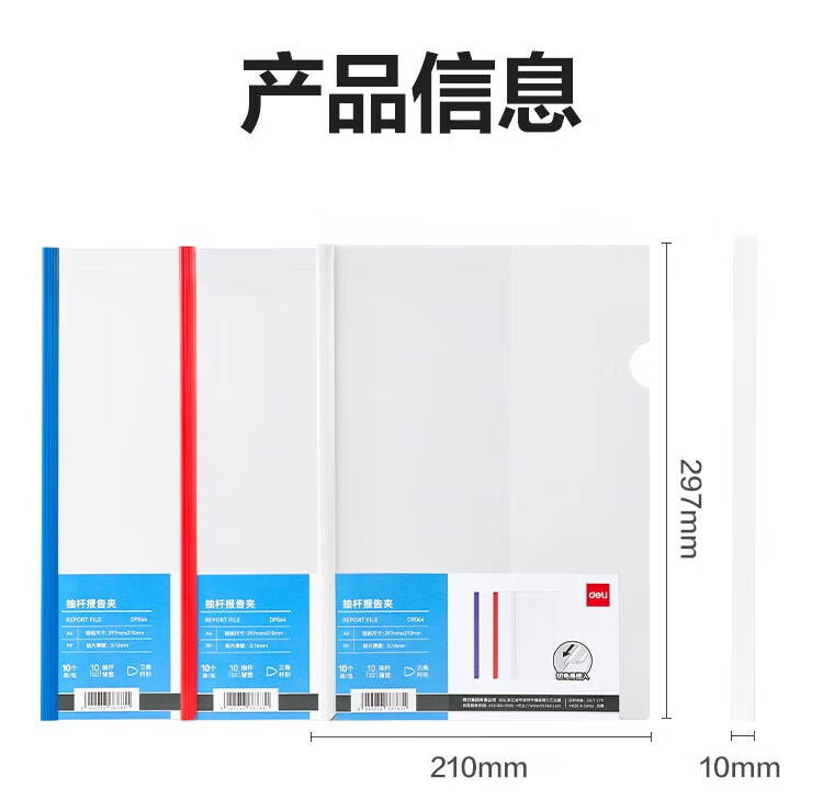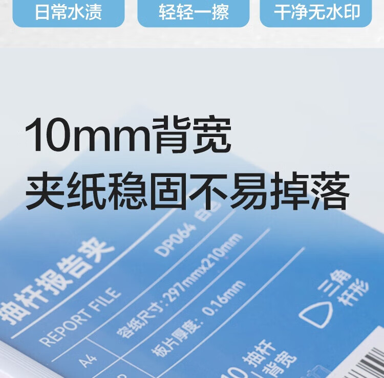 得力/deli DP064 文件夹 三角抽杆夹 简历报告夹商务会议资料学生试卷夹资料册产检报告收纳夹 【10mm】10个/包 白色