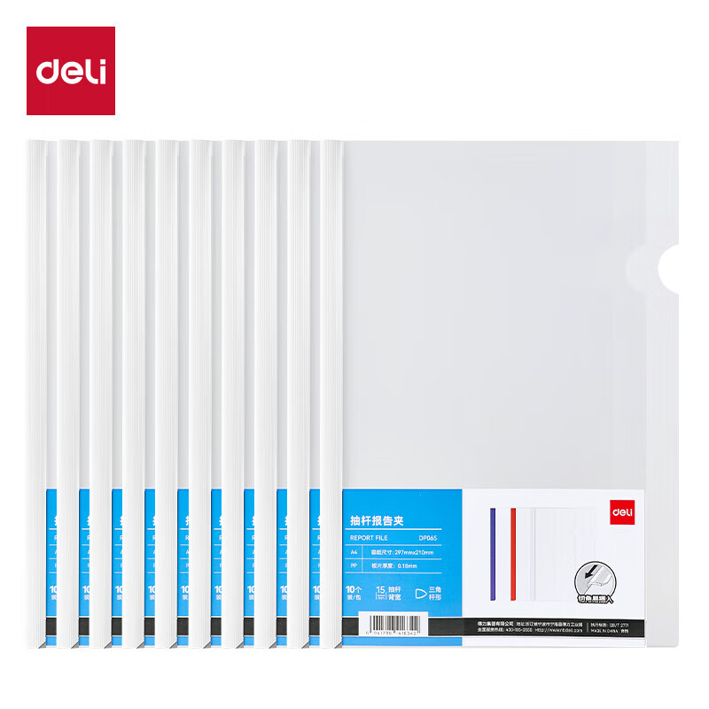 得力/deli DP065 文件夹 三角抽杆夹 简历报告夹商务会议资料学生试卷夹资料册产检报告收纳夹 【15mm】10个/包 白色