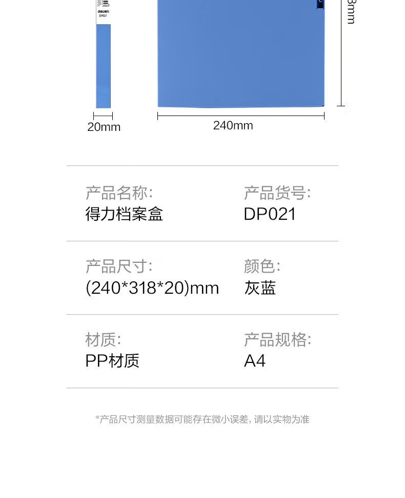 得力/deli DP021 档案盒 20mm标准型 灰蓝 1个