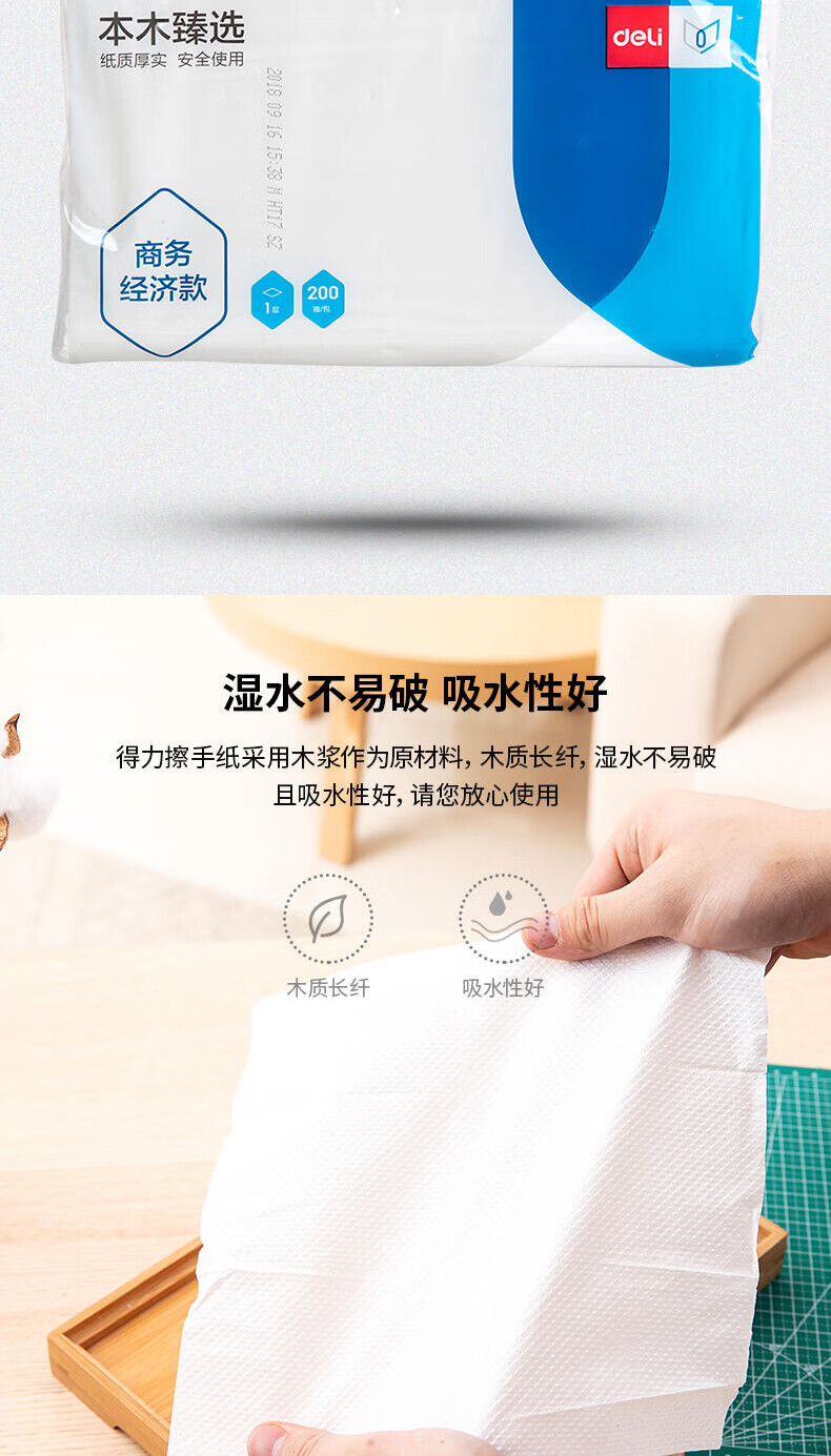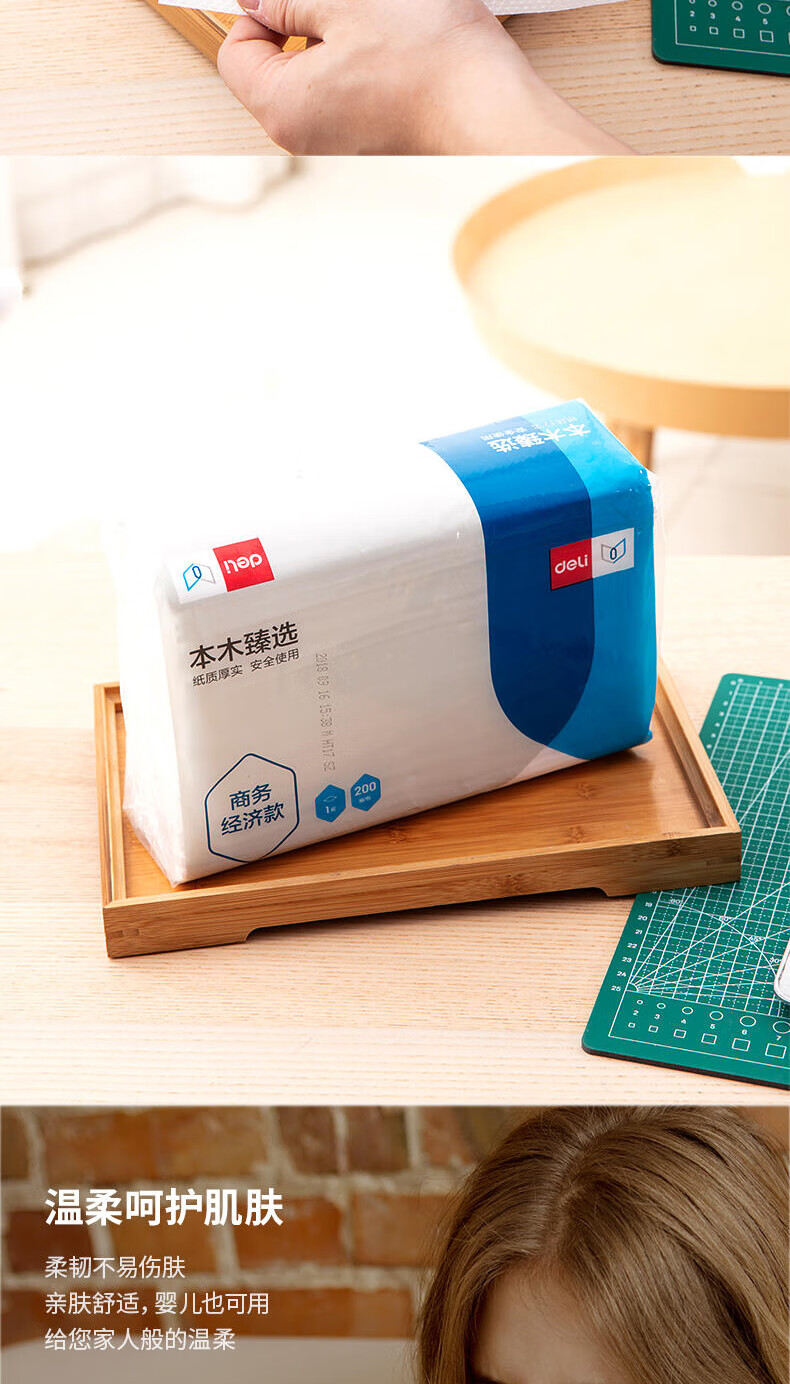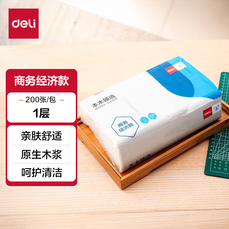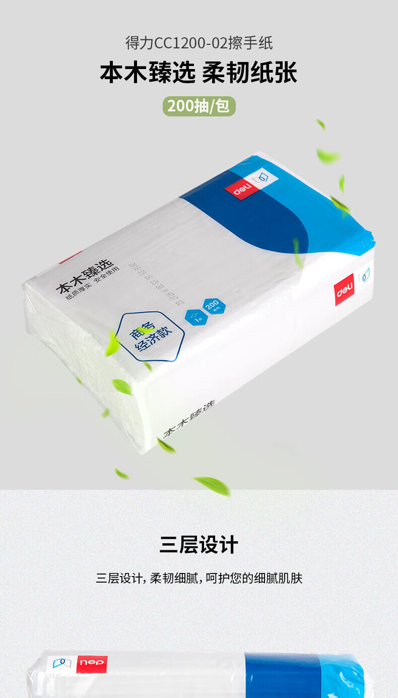 得力/deli CC1200-02 软包抽取式面纸 卷纸抽纸卫生纸擦手纸卷纸面巾纸抽取式卷纸纸巾可湿水纸面巾纸 1层 200张*1包