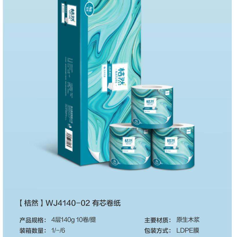 得力/deli WJ4140-02 卷类卫生纸 有芯卷纸4层140g-10卷 木浆卷纸/擦手纸