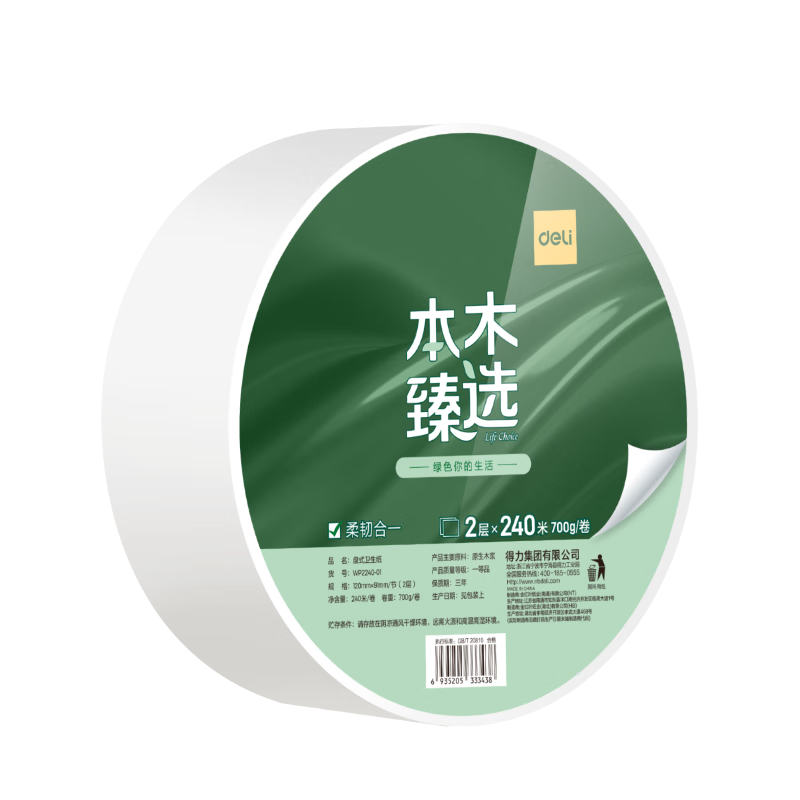 得力/deli WP2240-01 卷类卫生纸 本木臻选有芯大盘纸 白色 【本木臻选】2层240米*12卷