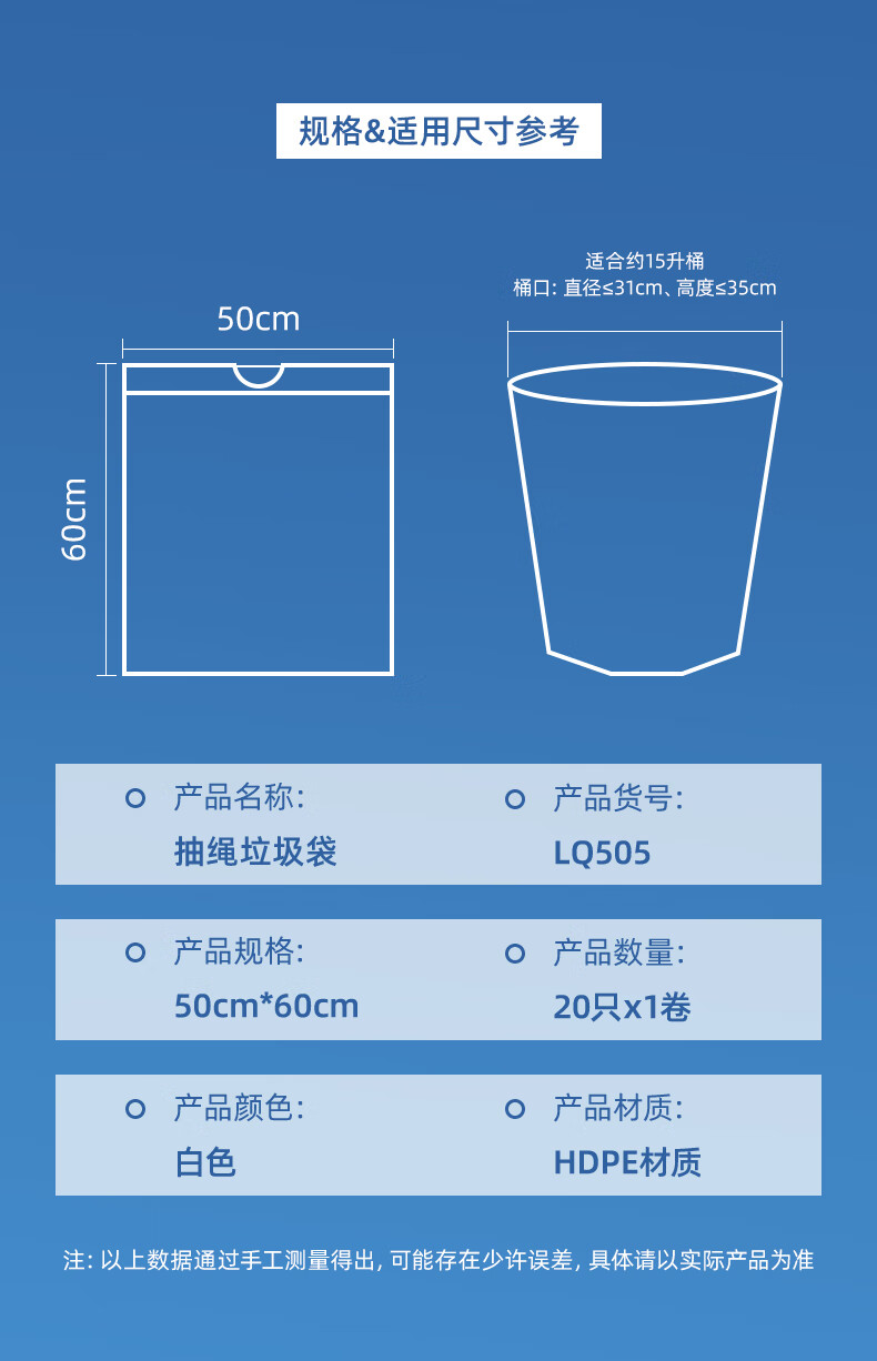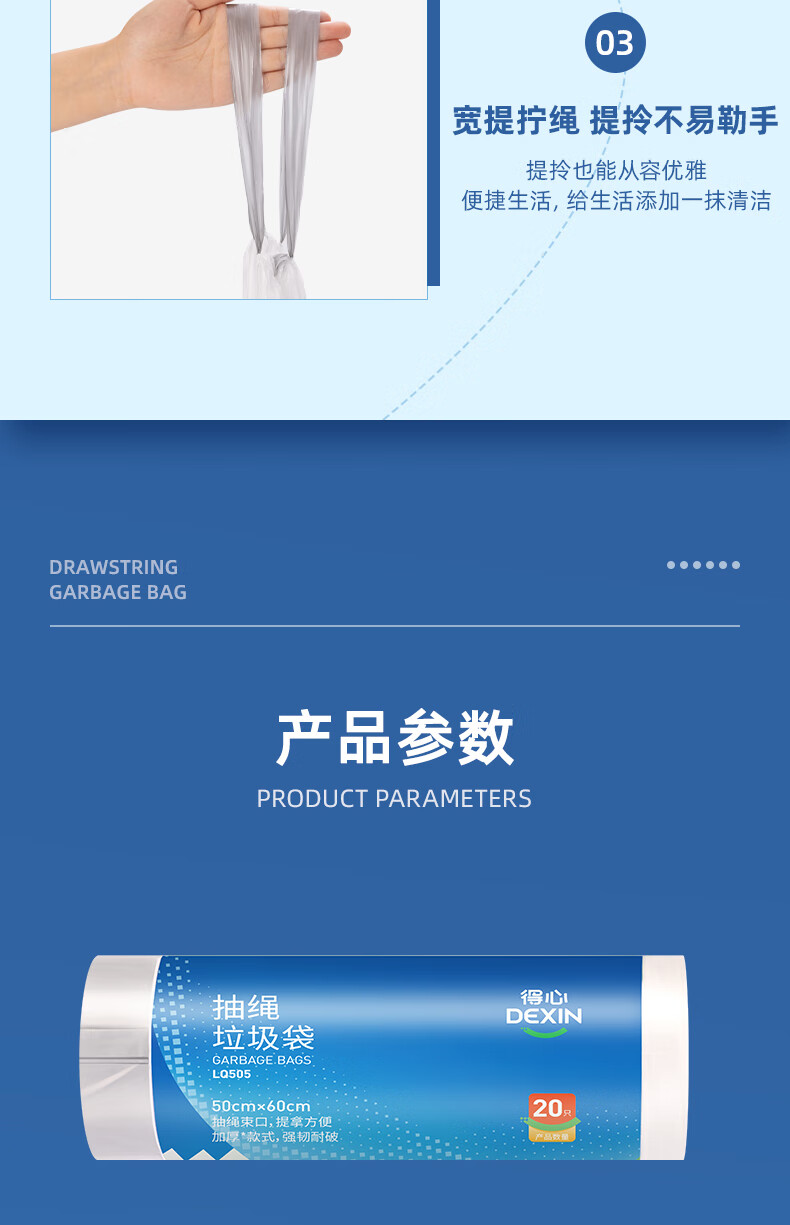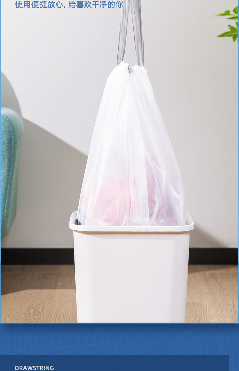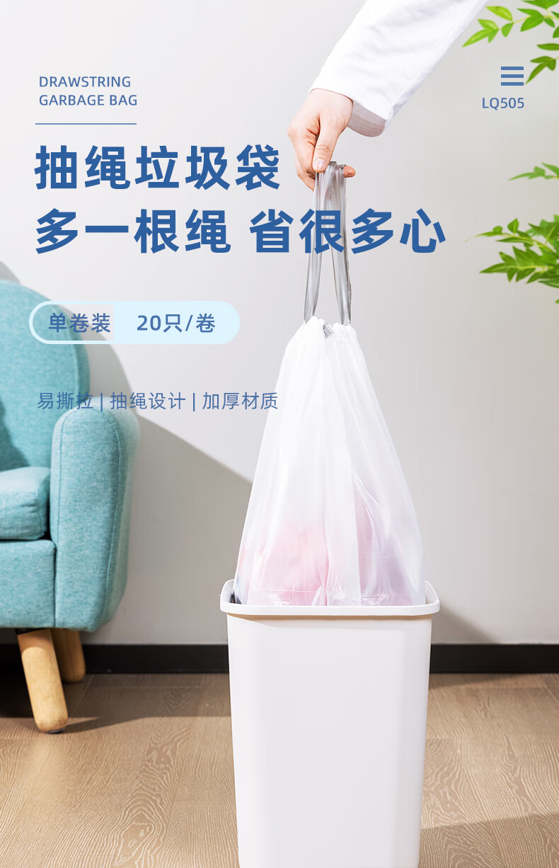 得力/deli LQ505 塑料制品 抽绳垃圾袋(白色)(20只/卷,1卷/包)