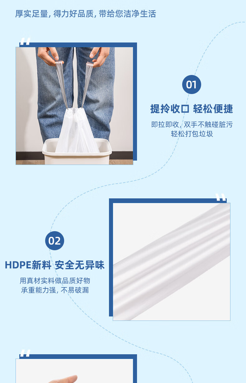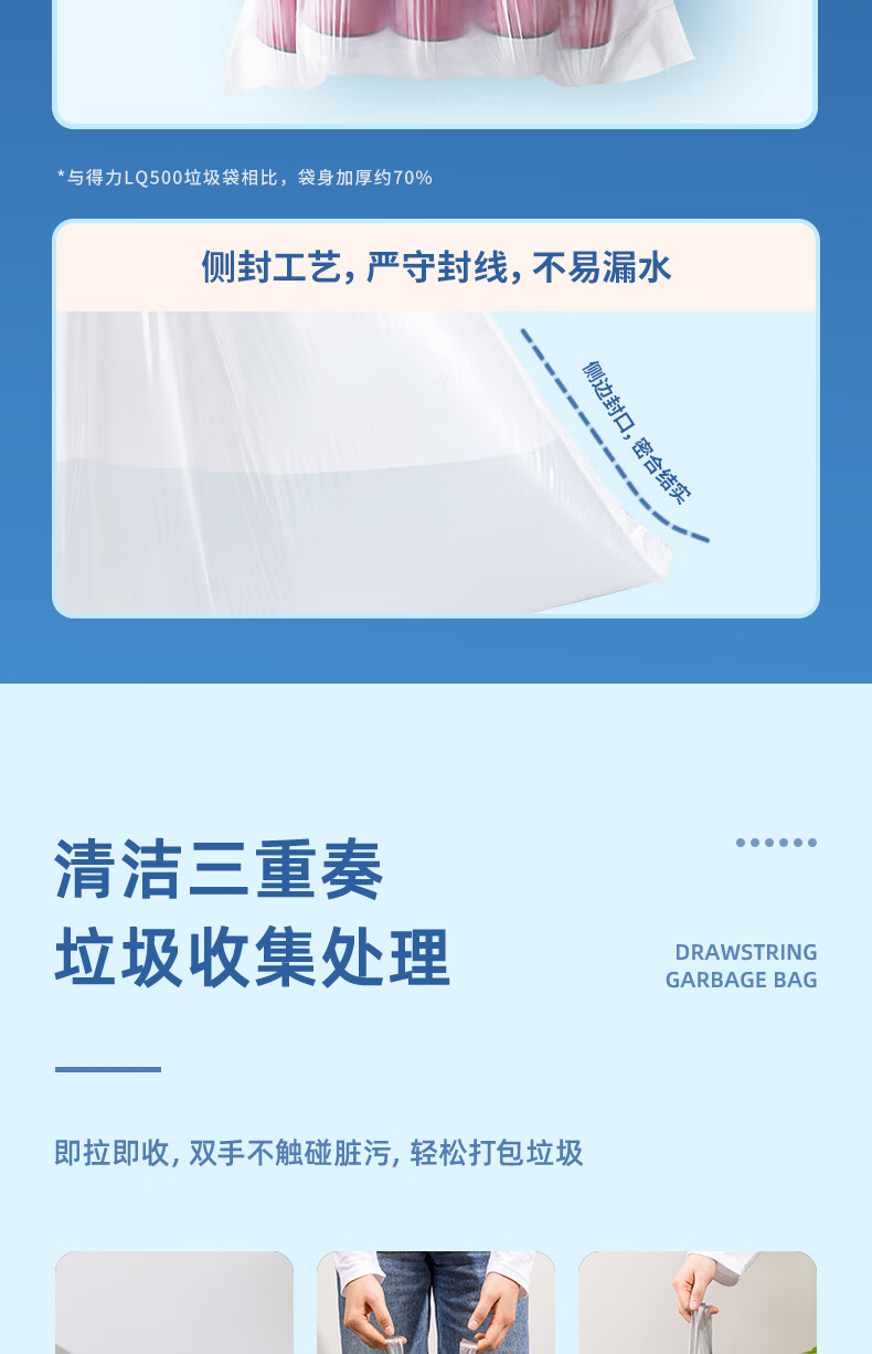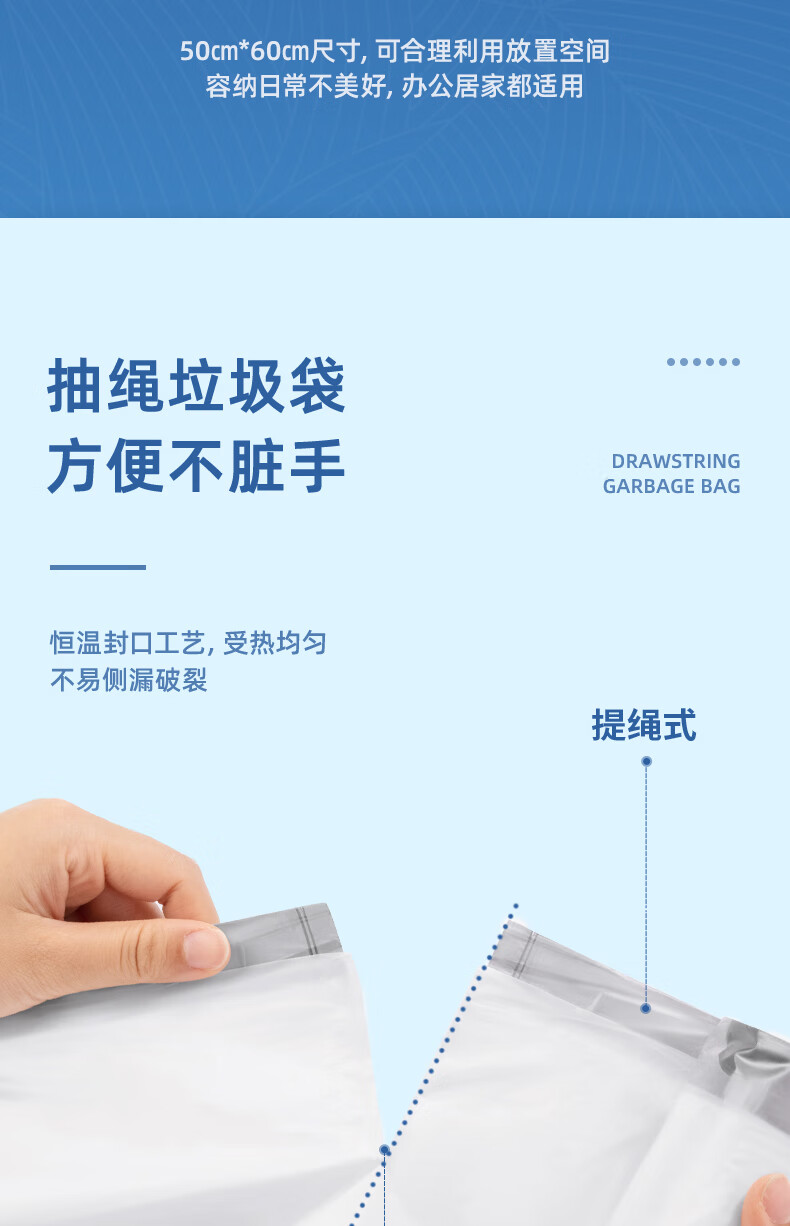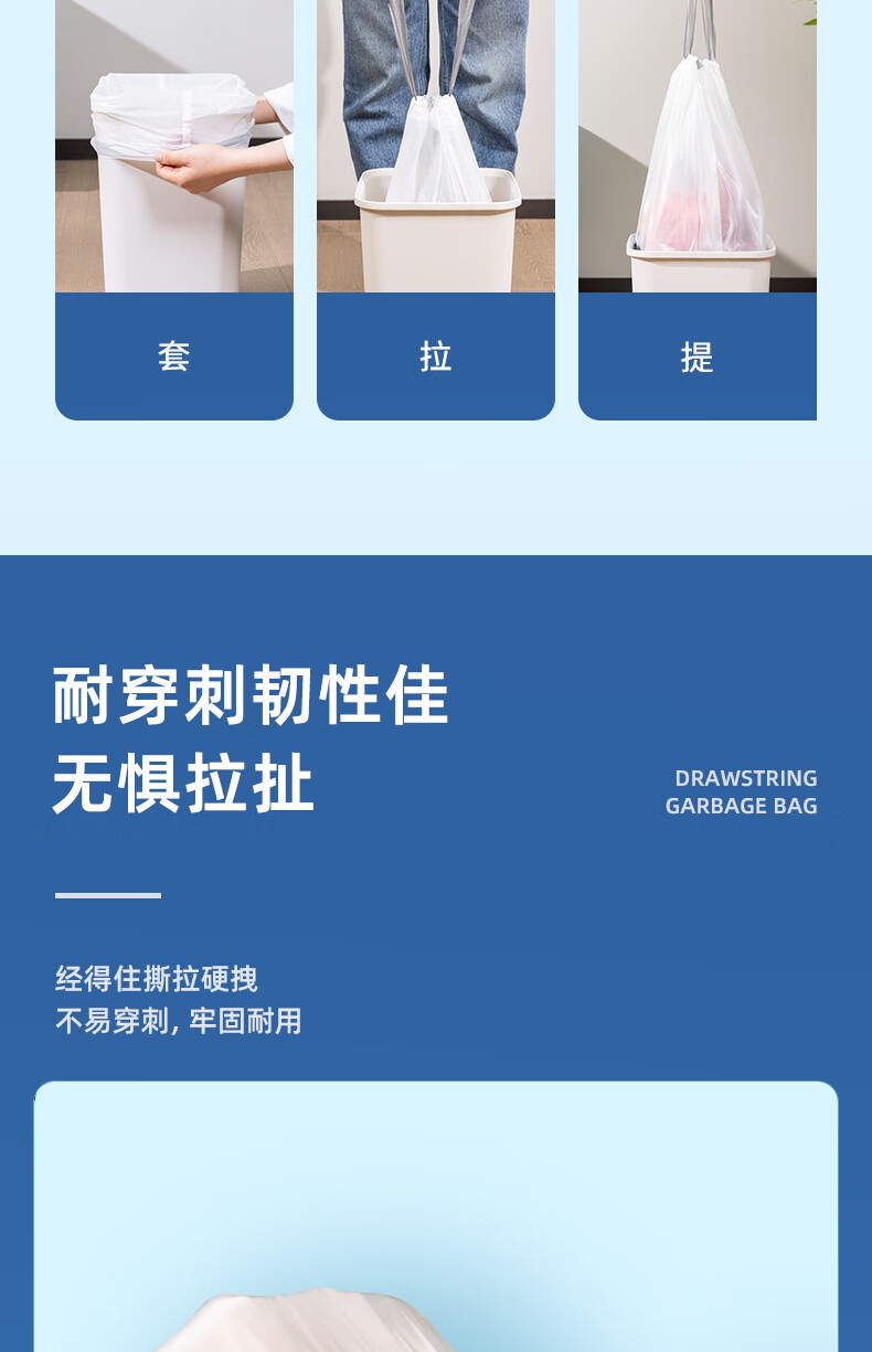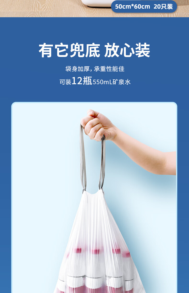 得力/deli LQ505 塑料制品 抽绳垃圾袋(白色)(20只/卷,1卷/包)