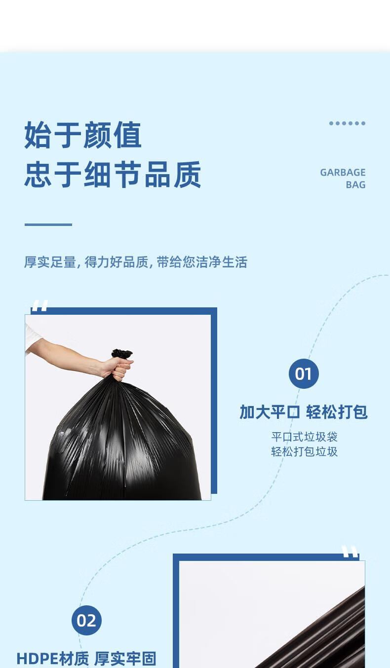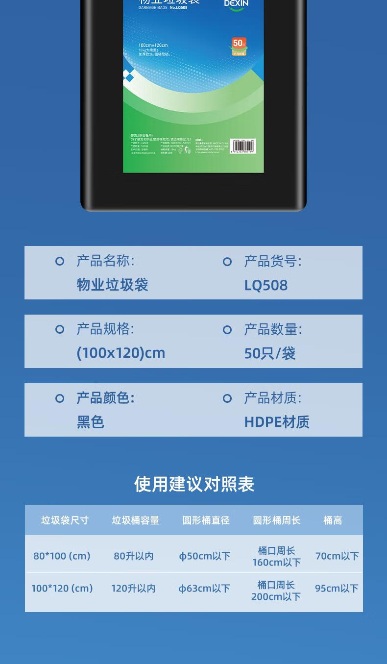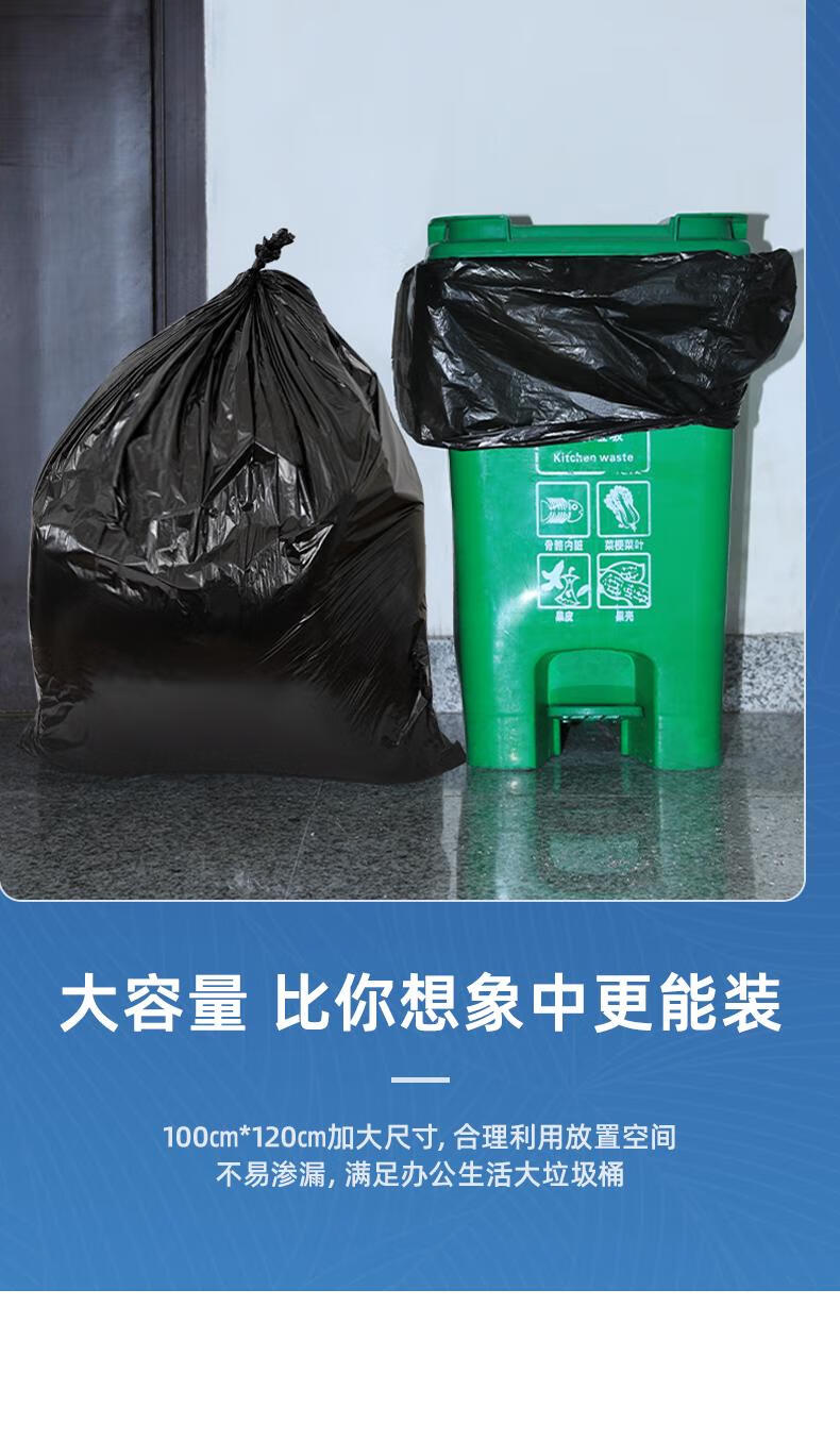 得力/deli LQ508 塑料制品 大号垃圾袋商用八角式公司加厚塑料袋环卫物业餐饮酒店垃圾袋(黑色)(50只/包)