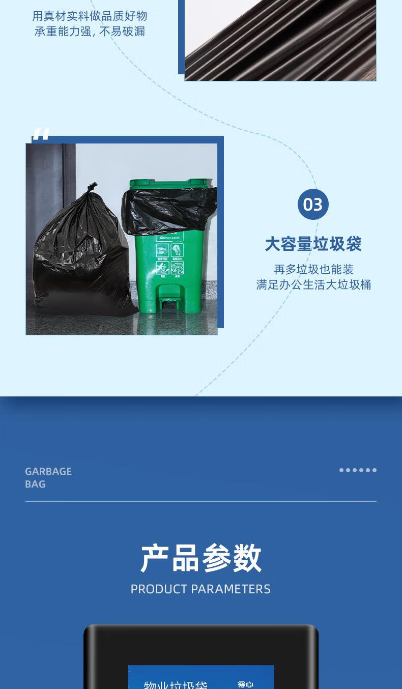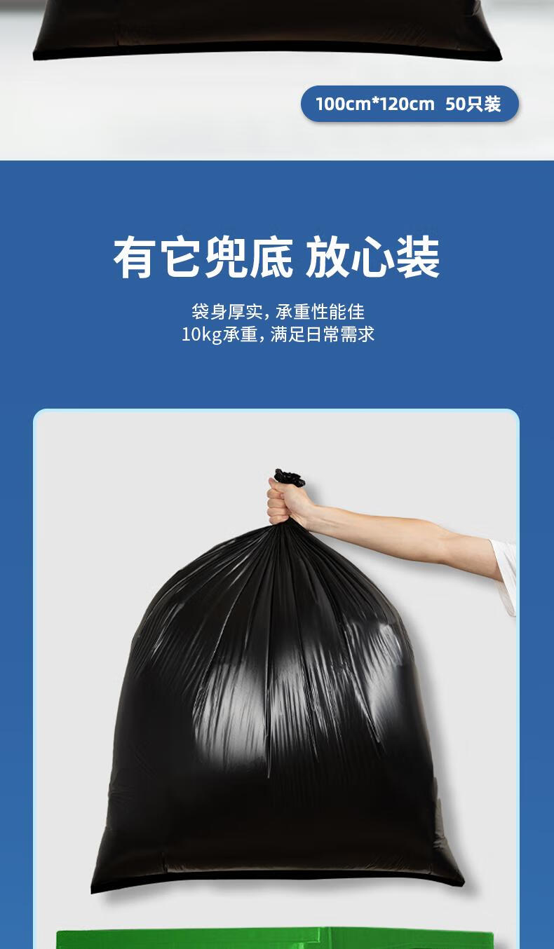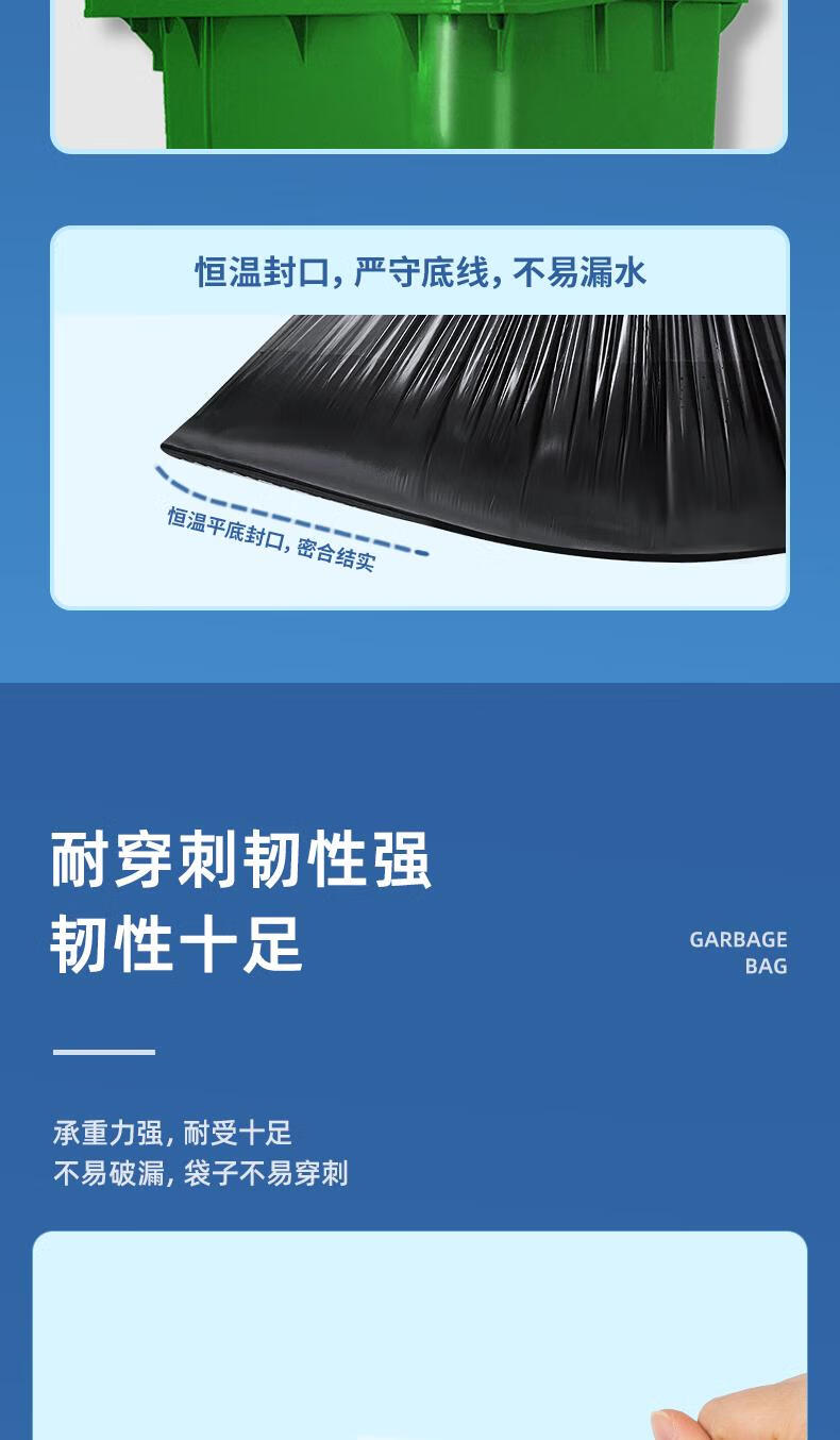 得力/deli LQ508 塑料制品 大号垃圾袋商用八角式公司加厚塑料袋环卫物业餐饮酒店垃圾袋(黑色)(50只/包)