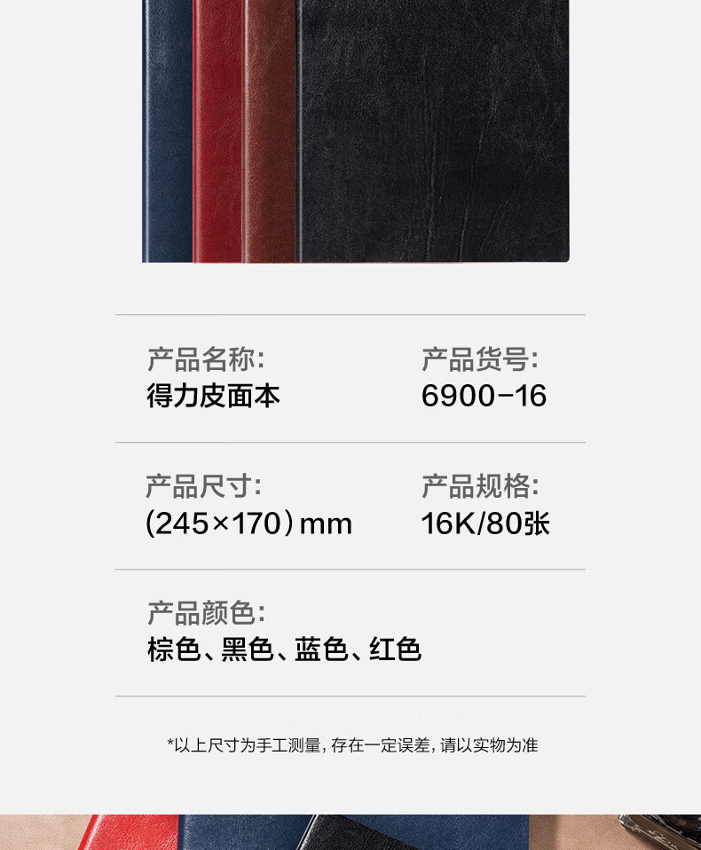 得力/deli 6900-16 薄本册 皮面本办公笔记本会议记事本16K80张/本250*175mm