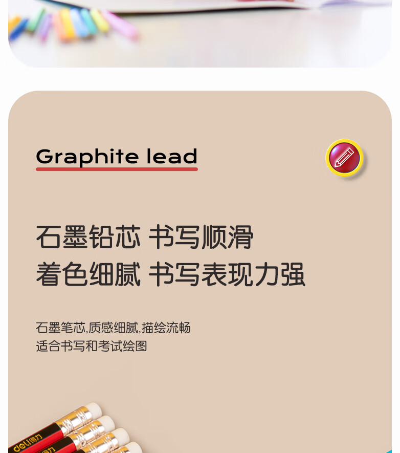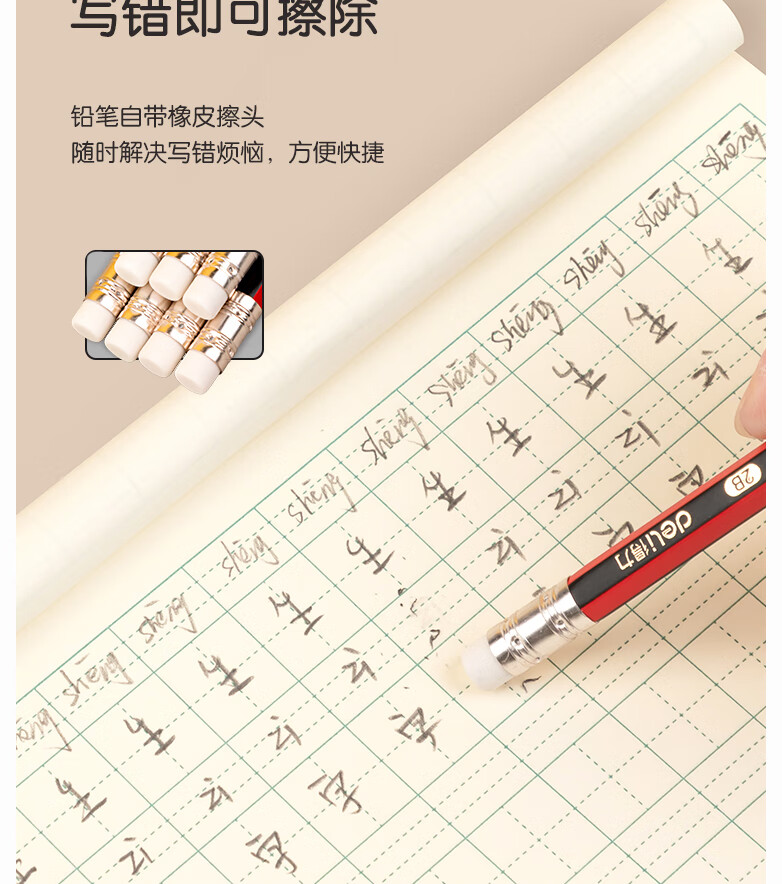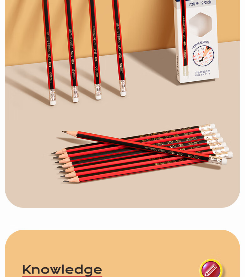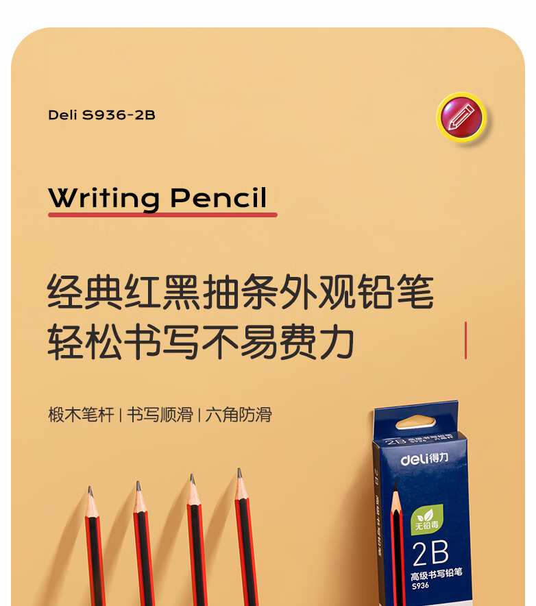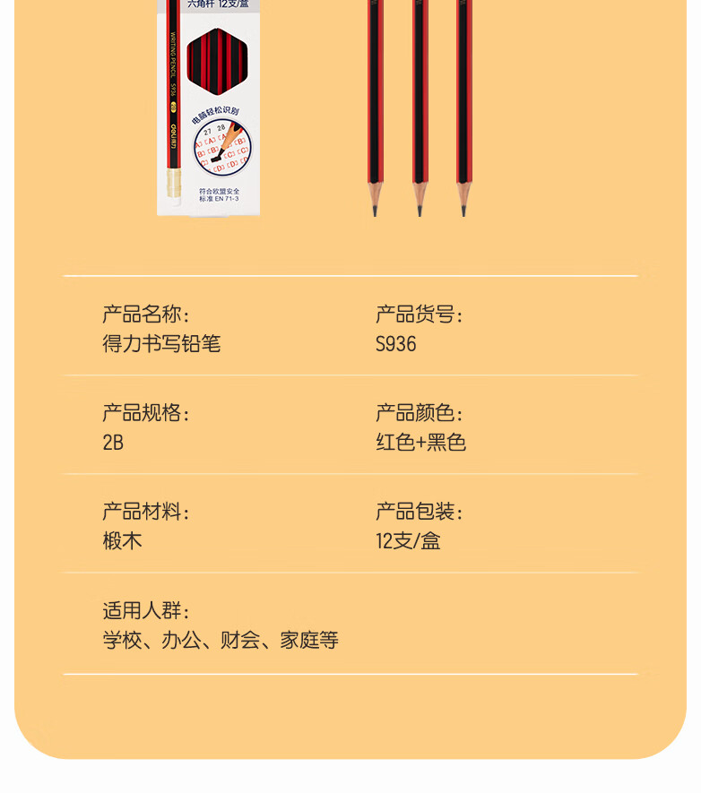 得力/deli S936 书写用笔类用具 2B书写铅笔学生铅笔考试铅笔高级铅笔(红色)(12支/盒)
