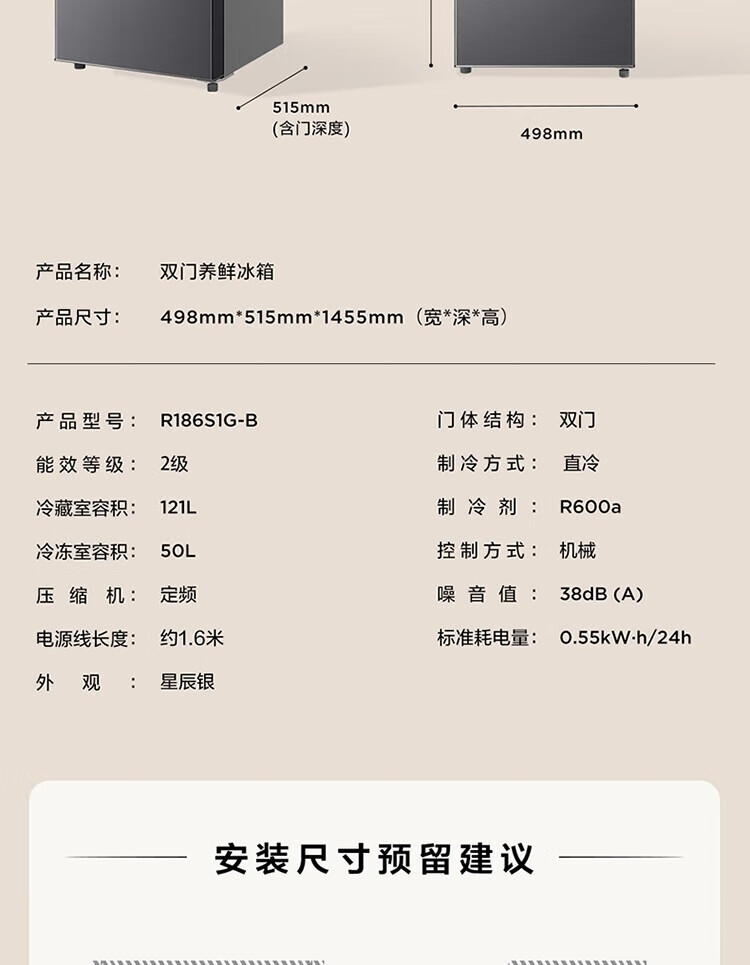 冷藏室容积(L)  :   121L