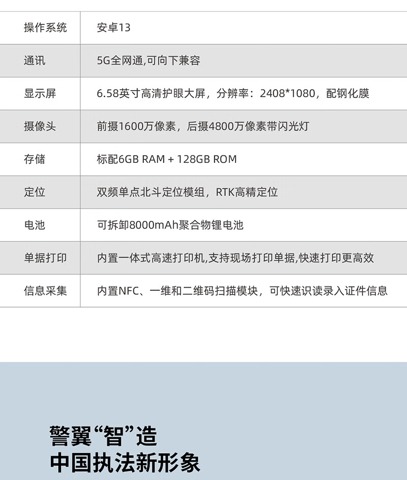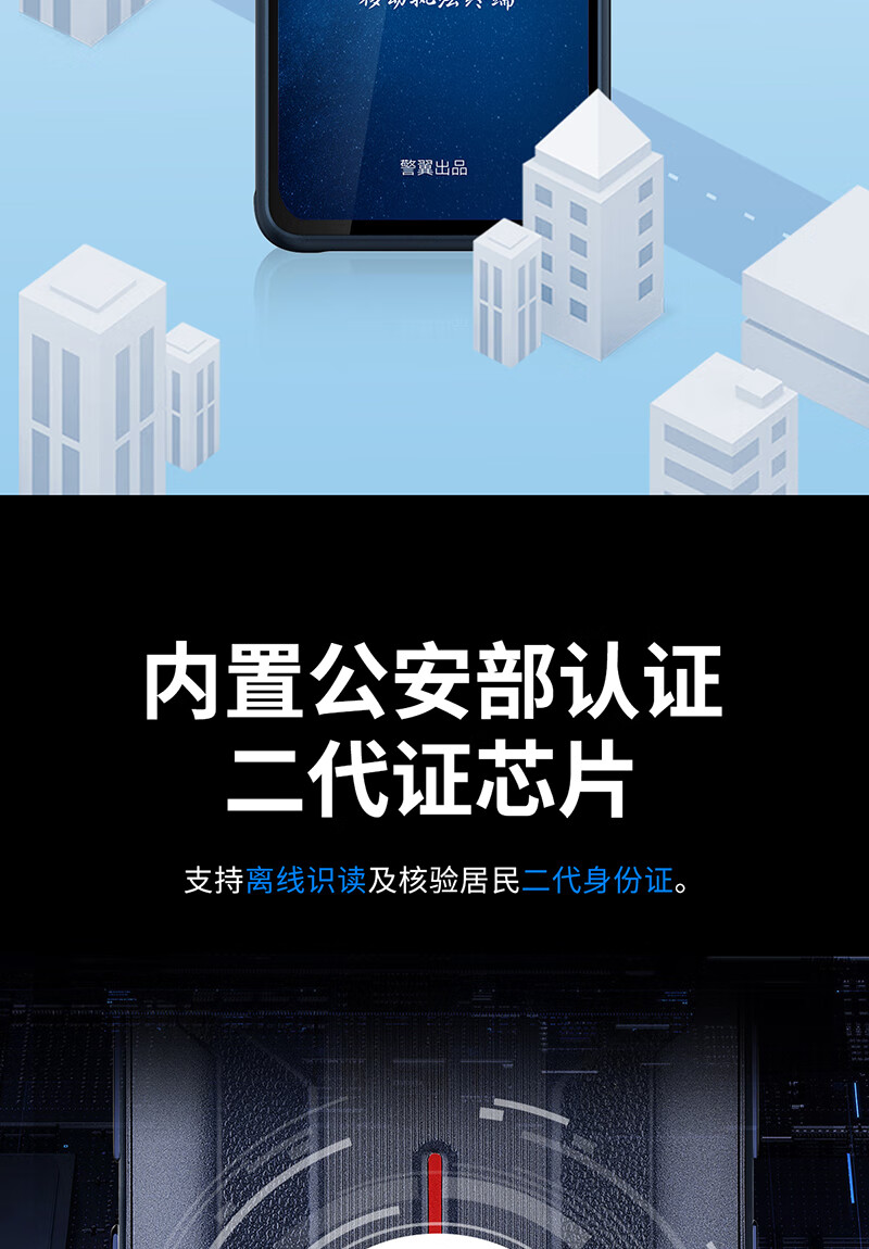 警翼 P8 通用无线电通信设备 执法记录仪-移动终端 P8(6G+128G)5G北斗芯片支持集指APP核验 打印版(不含身份证模块)