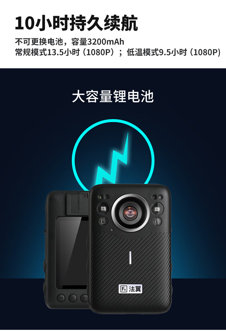 法翼/FAYI T1 通用无线电通信设备 执法记录仪高清红外夜视红蓝爆闪高清3200万像素10h超长待机 128G版