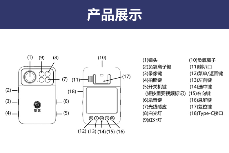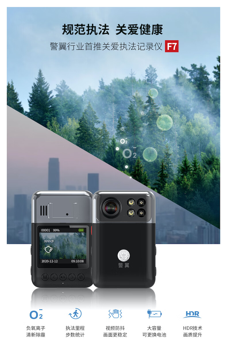 警翼 F7 通用无线电通信设备 强劲版执法记录仪10小时连续摄入1440P高清摄录高效视频编码 64G