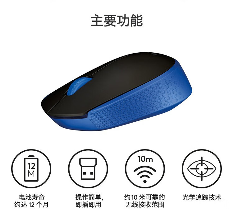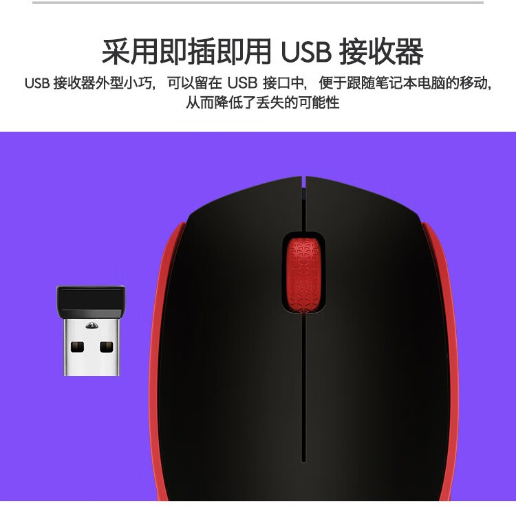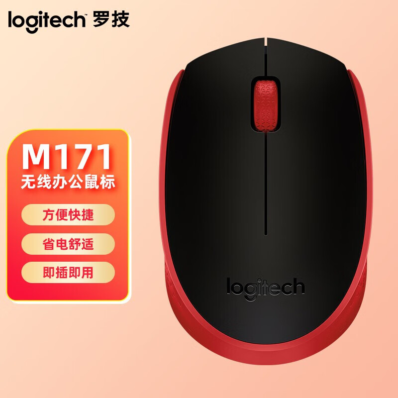 罗技/Logitech M171 鼠标 无线鼠标商务鼠标无线2.4G接收器 M171红色