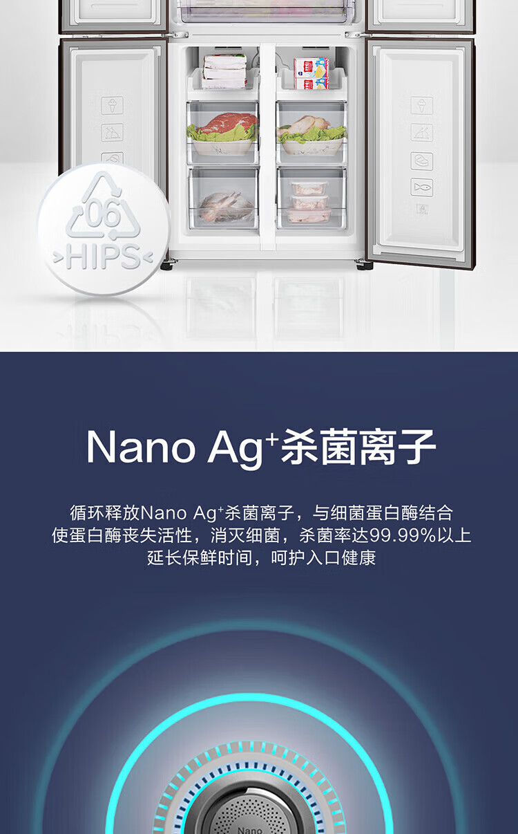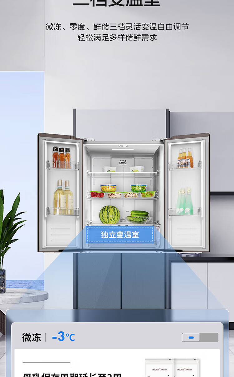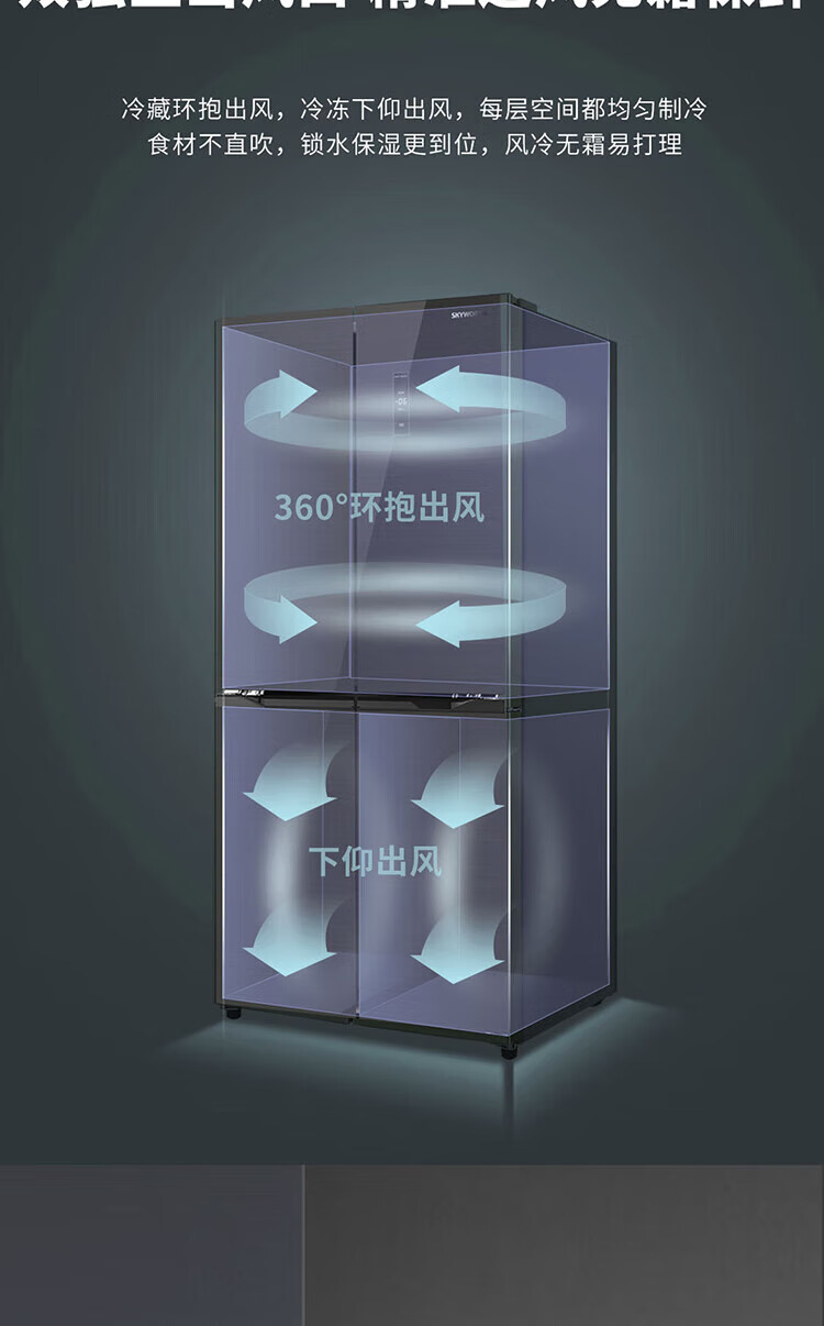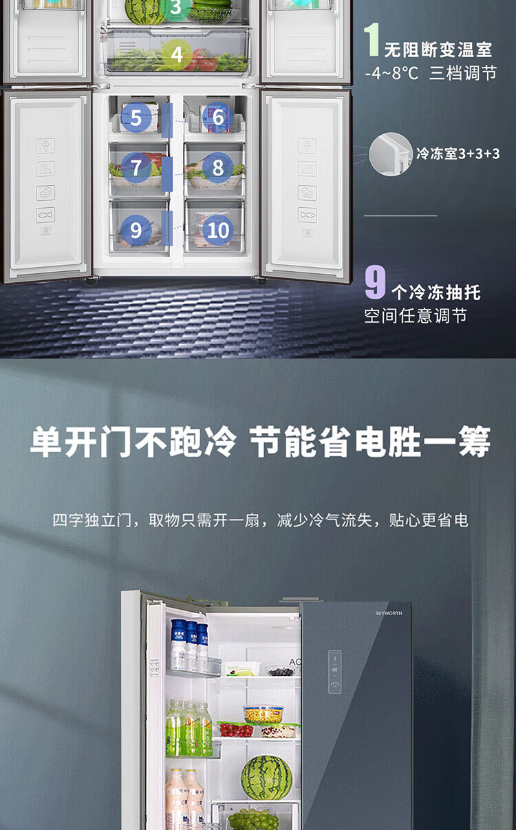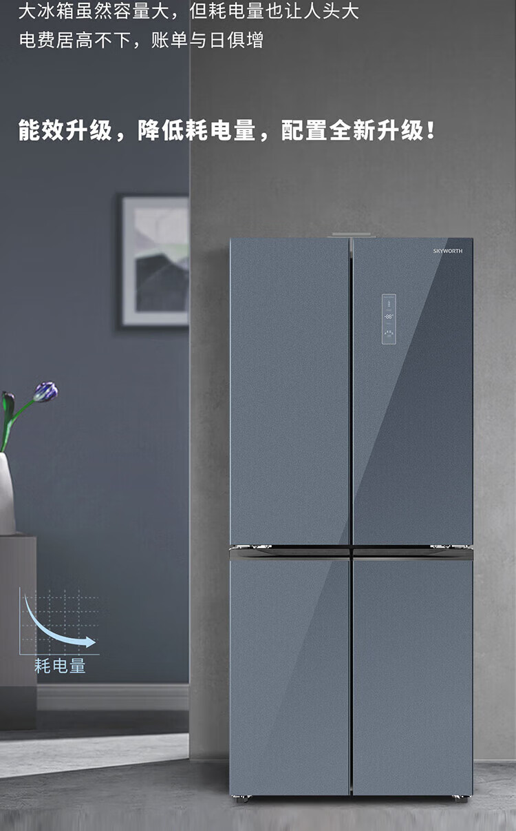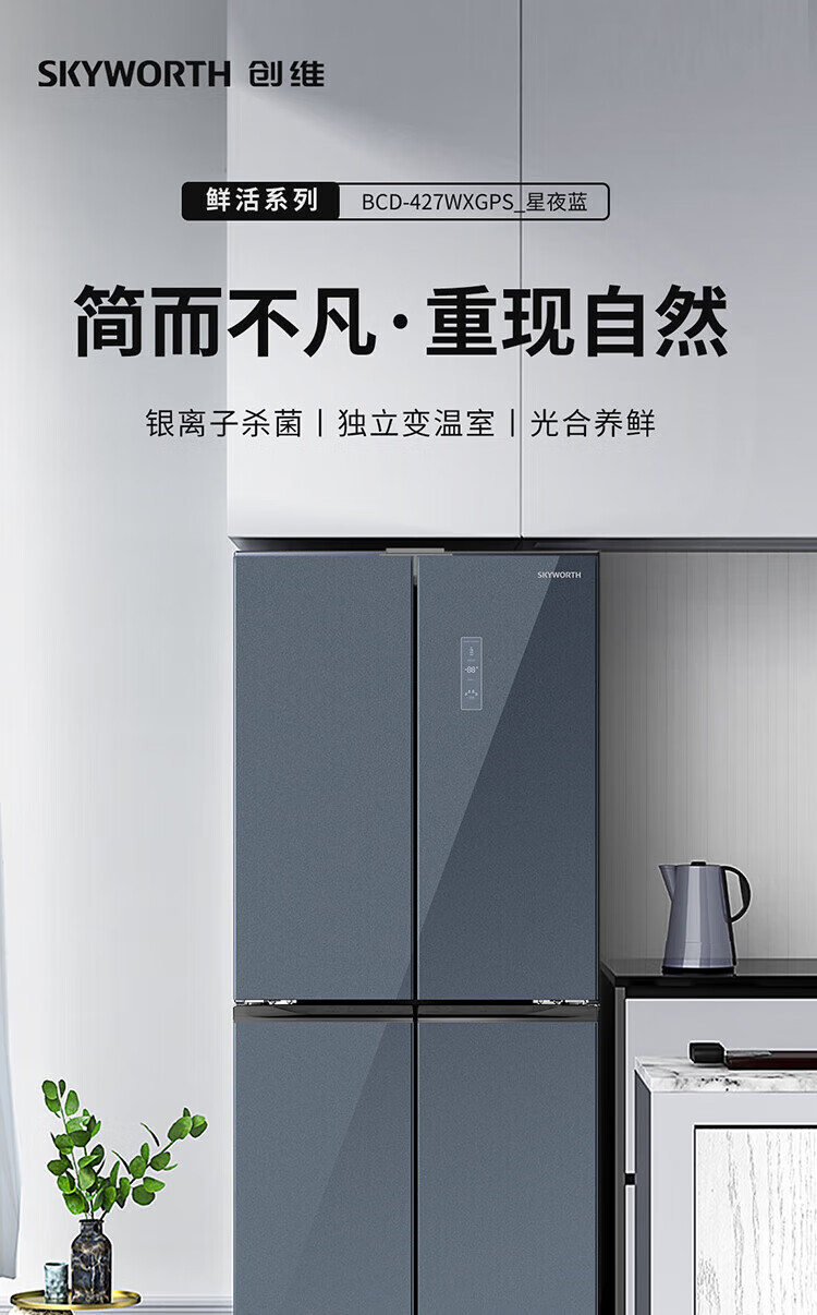 创维/Skyworth BCD-427WXGPS 电冰箱 427升双变频十字对开门冰箱 一级能效 冷藏三挡变温调节 90°直角开门 BCD-427WXGPS星夜蓝