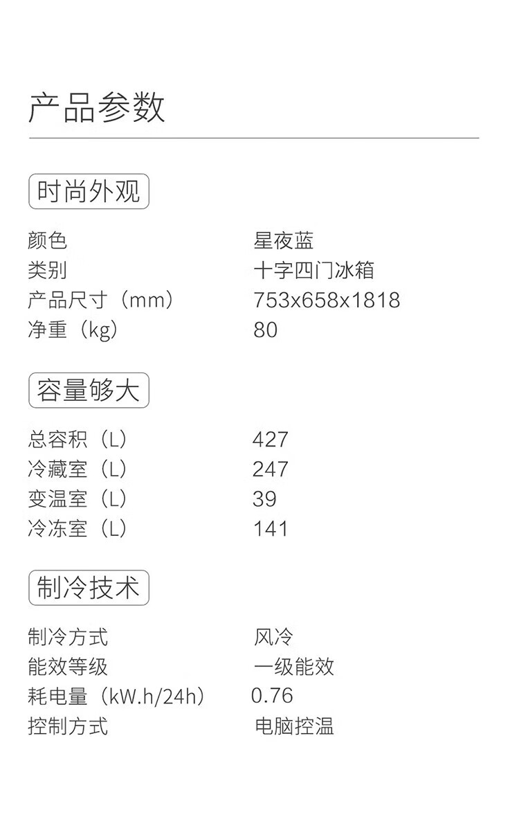 冷藏室容积(L)  :   247L