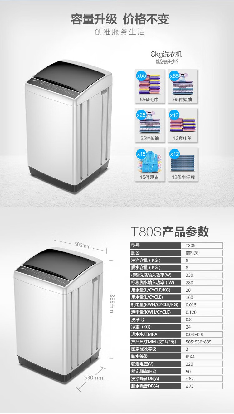 洗涤容量  :   8kg