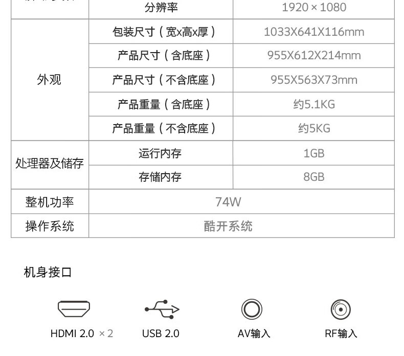 屏幕尺寸(英寸)  :   43