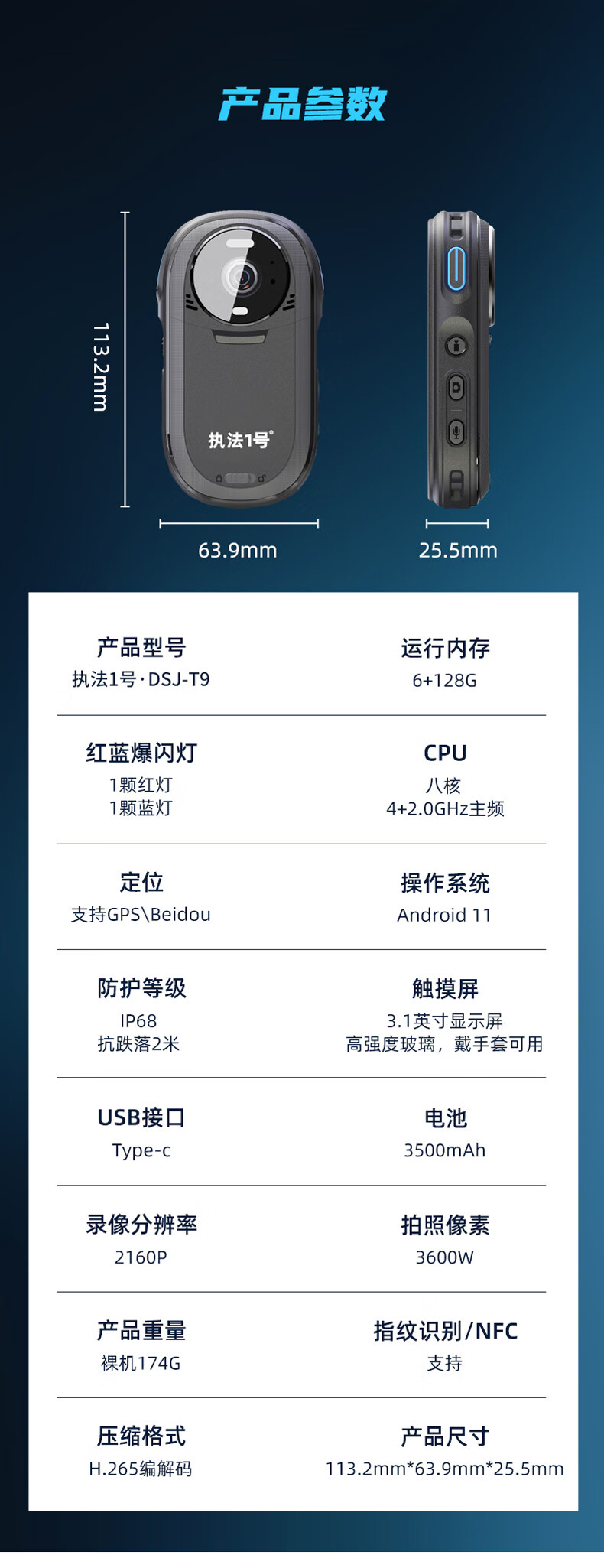 执法1号 DSJ-T9 通用无线电通信设备 执法记录仪5G音视频无线图传实时监控录像现场记录拍摄 64G内存版