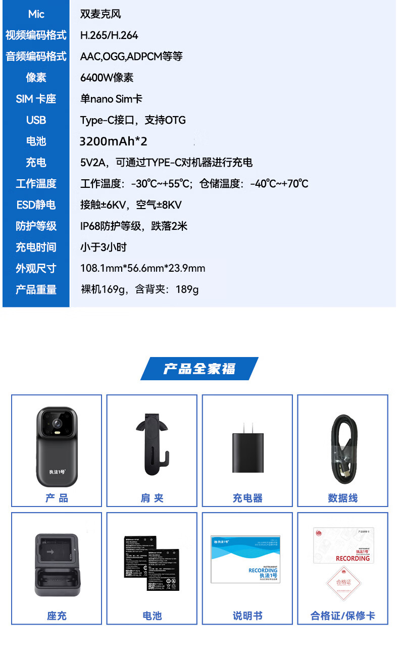 包装清单  :   执法记录仪256G
