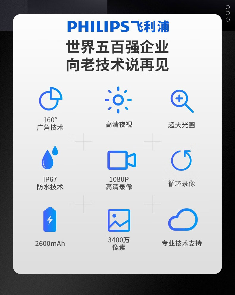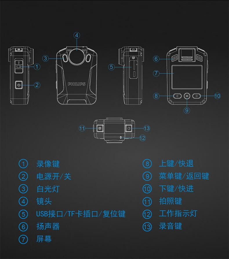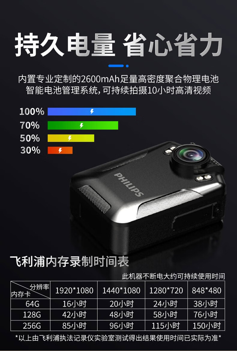 飞利浦/PHILIPS VTR-8101 通用无线电通信设备 执法记录仪高清夜视防爆随身执法仪便携长续航 256G