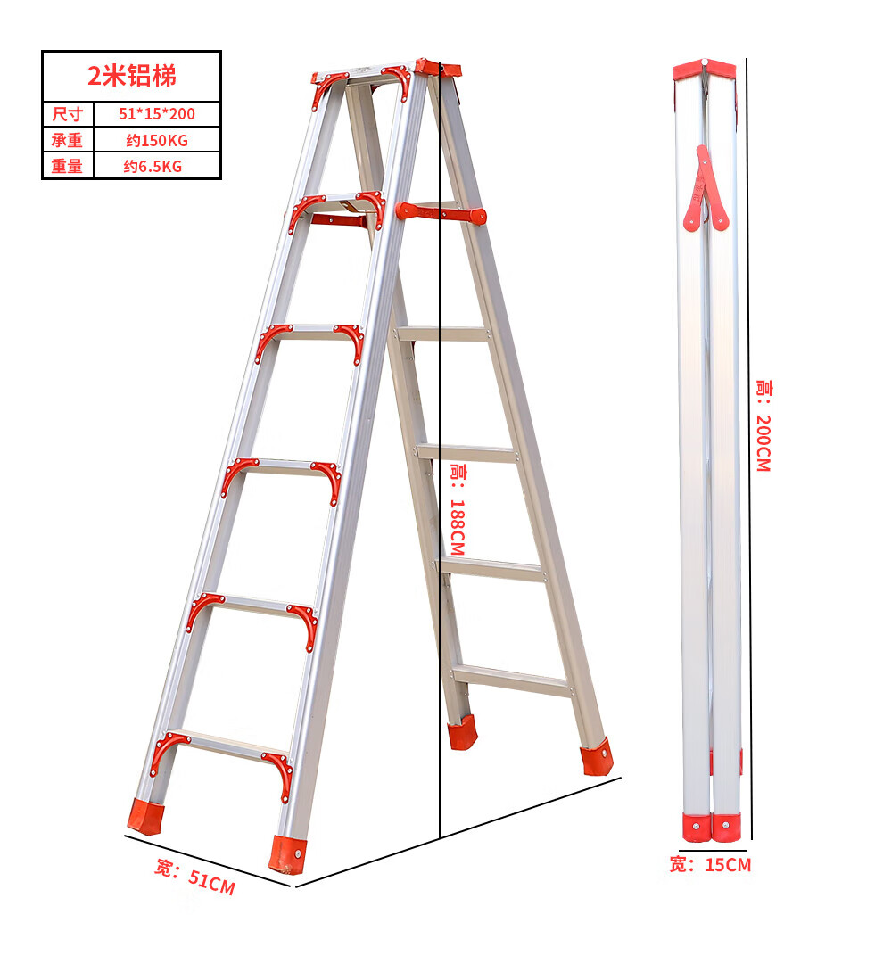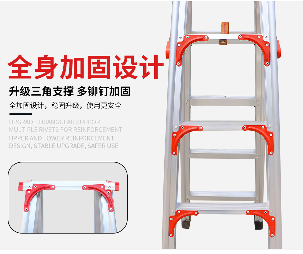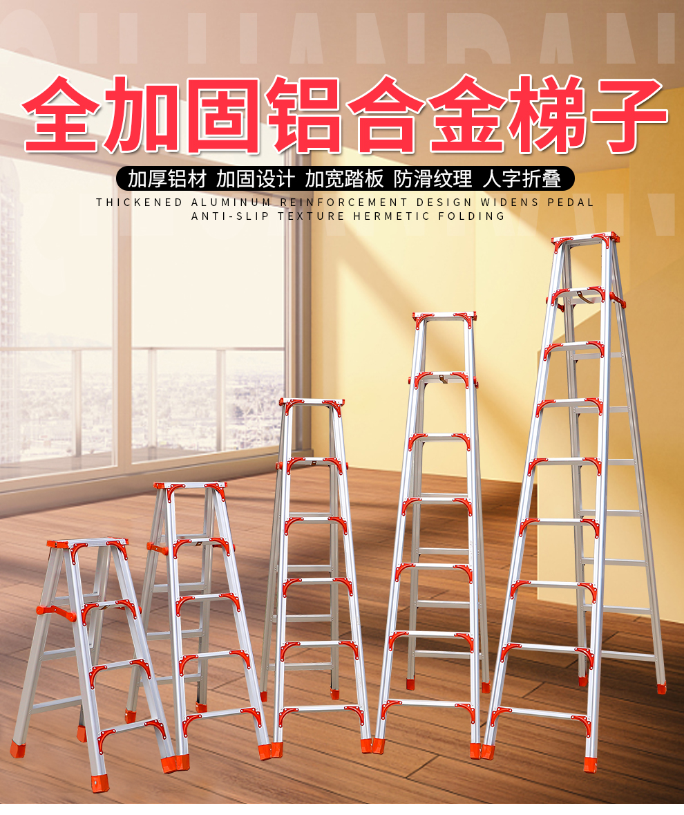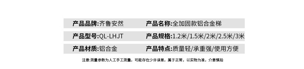 齐鲁安然 QL-JGLHJT-3 梯子 铝合金梯子【全加固 300CM】双侧折叠梯 3米 梯子 人字梯 工程梯 装修梯具