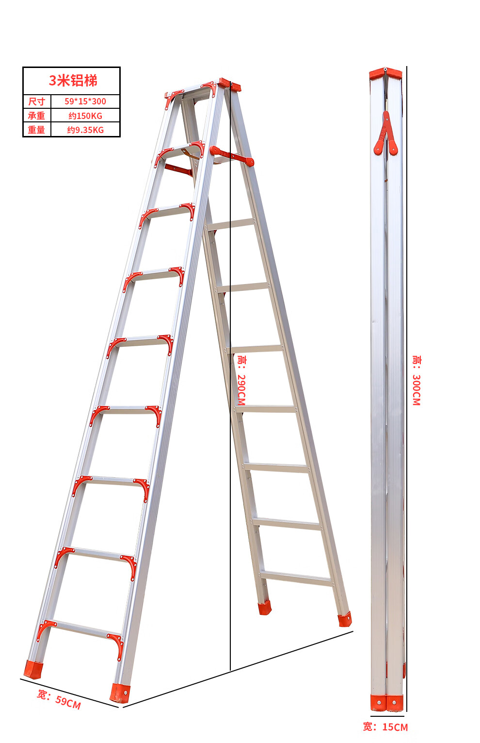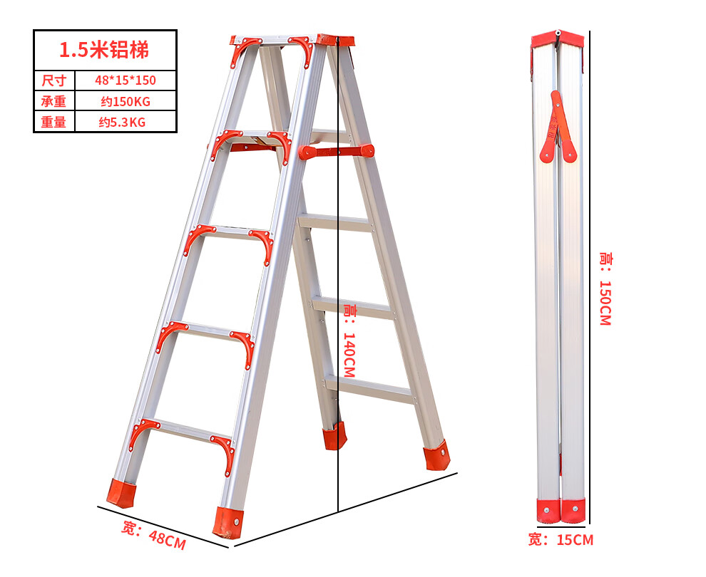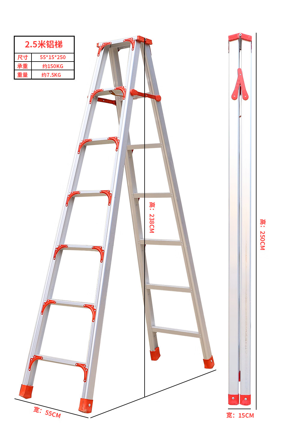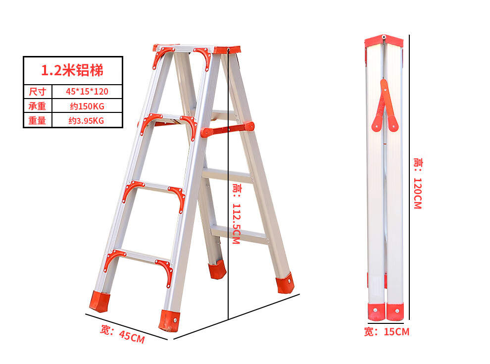齐鲁安然 QL-JGLHJT-3 梯子 铝合金梯子【全加固 300CM】双侧折叠梯 3米 梯子 人字梯 工程梯 装修梯具