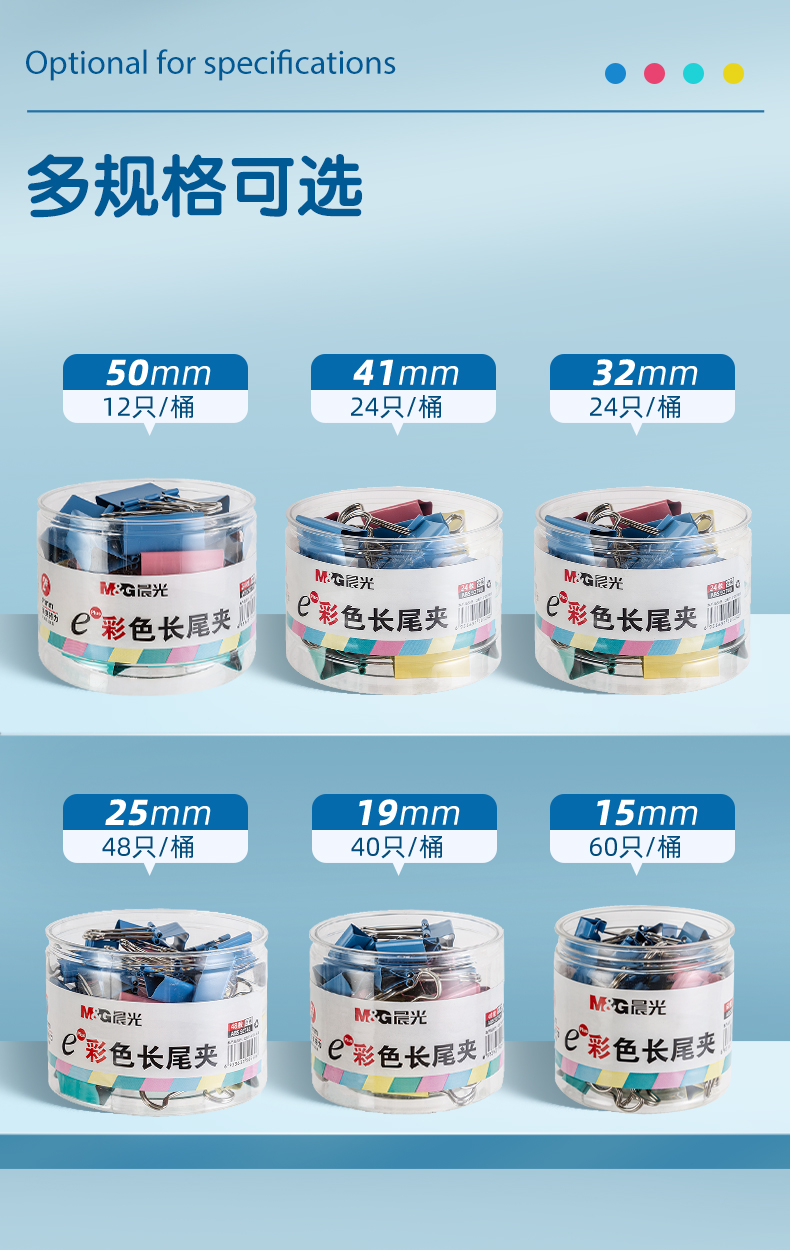 晨光/M&G ABS92738 长尾夹 50mm彩色长尾夹 金属票据夹 Eplus系列办公燕尾夹 12只/罐