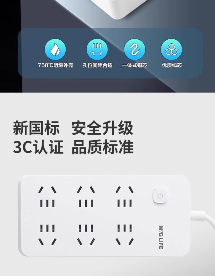 晨光/M&G AEA98683 插座 安全8位5孔带过载保护插座 插排/插线板/接线板/排插/拖线板 3米