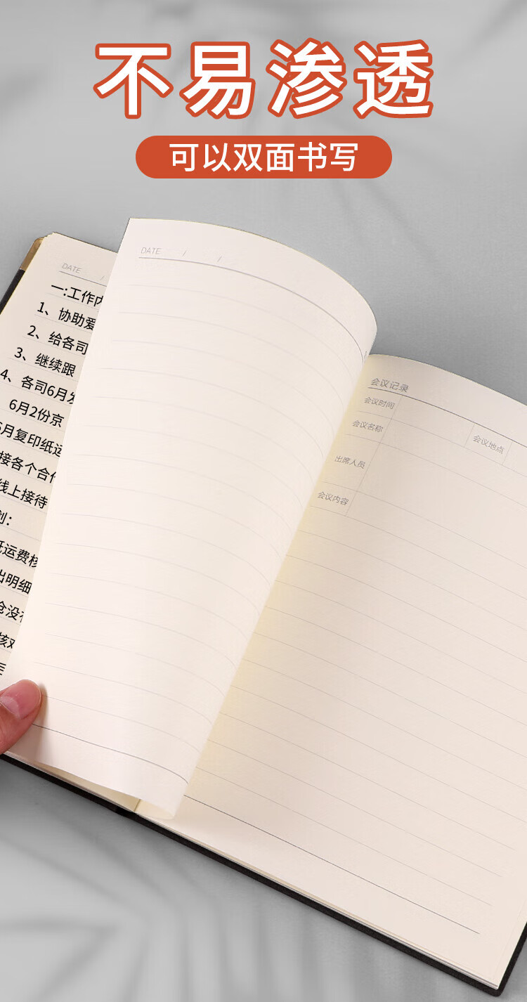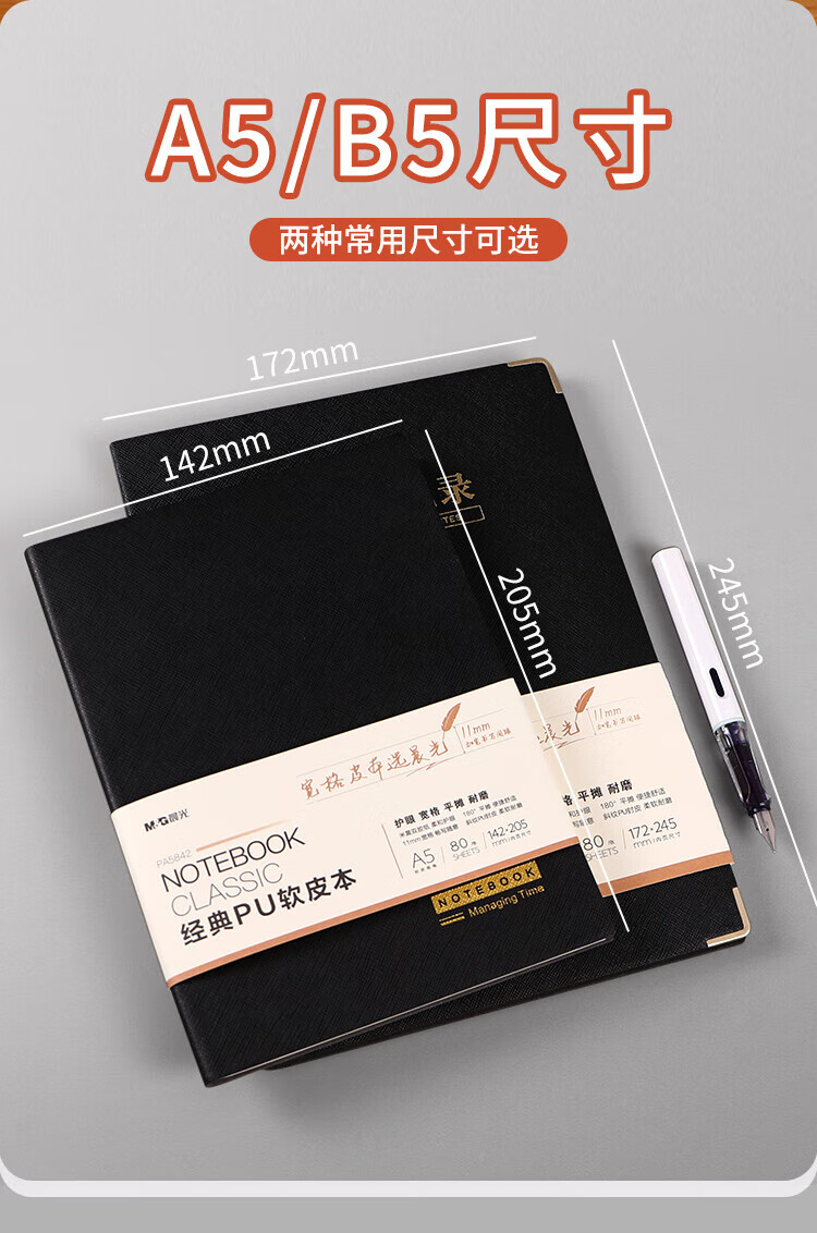 晨光/M&G PB5843 薄本册 黑色软皮革面笔记本本子开会办公用品会议记录本日记本记事本商务B5 80张单本
