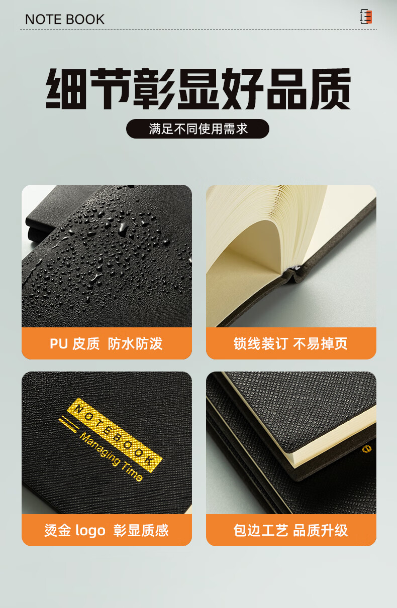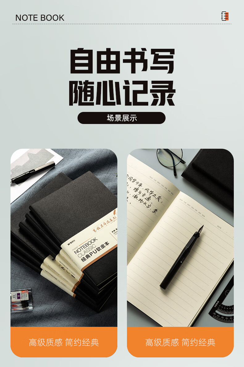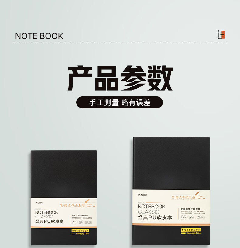 晨光/M&G PB5F42 薄本册 黑色软皮革面笔记本本子开会办公用品会议记录本日记本记事本商务B5/18K 150张单本