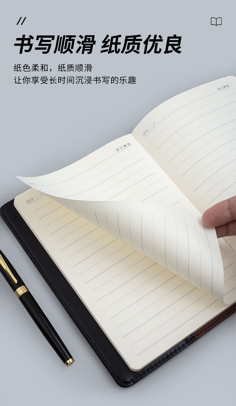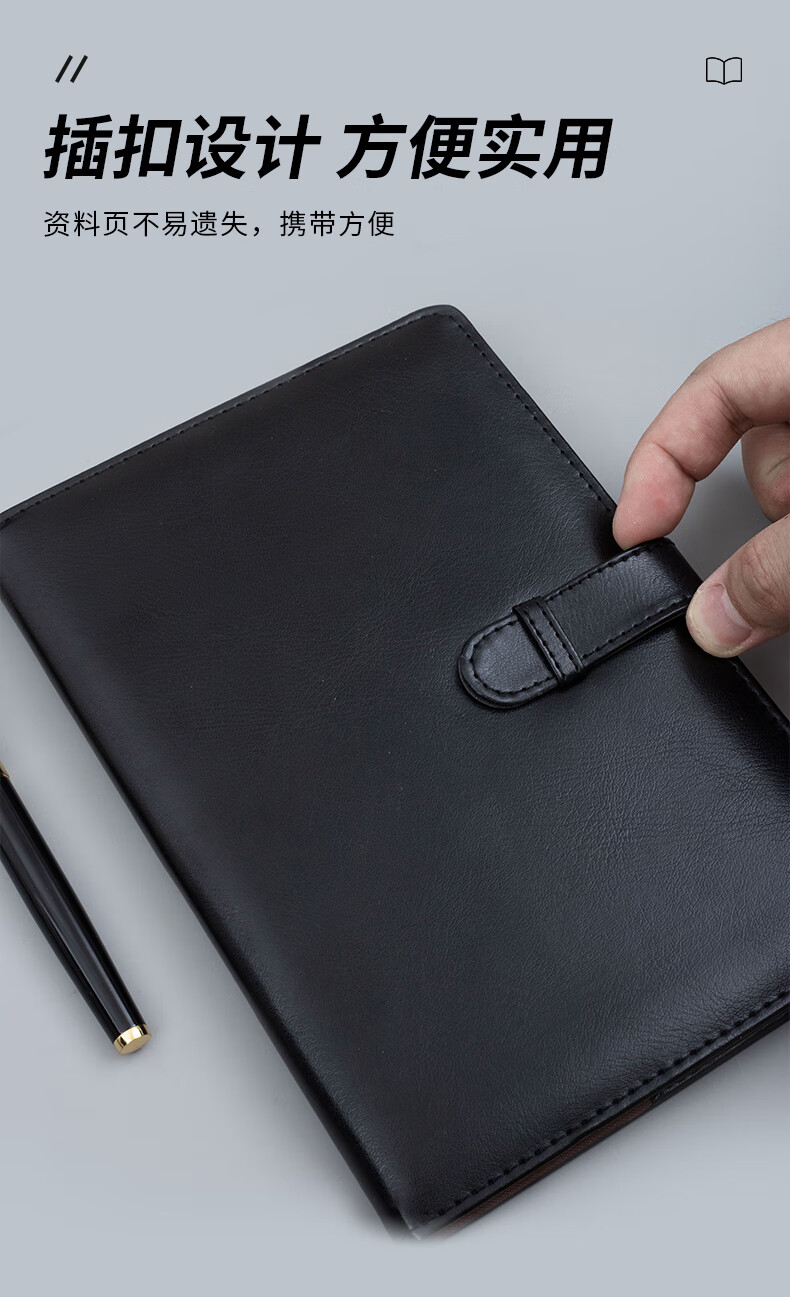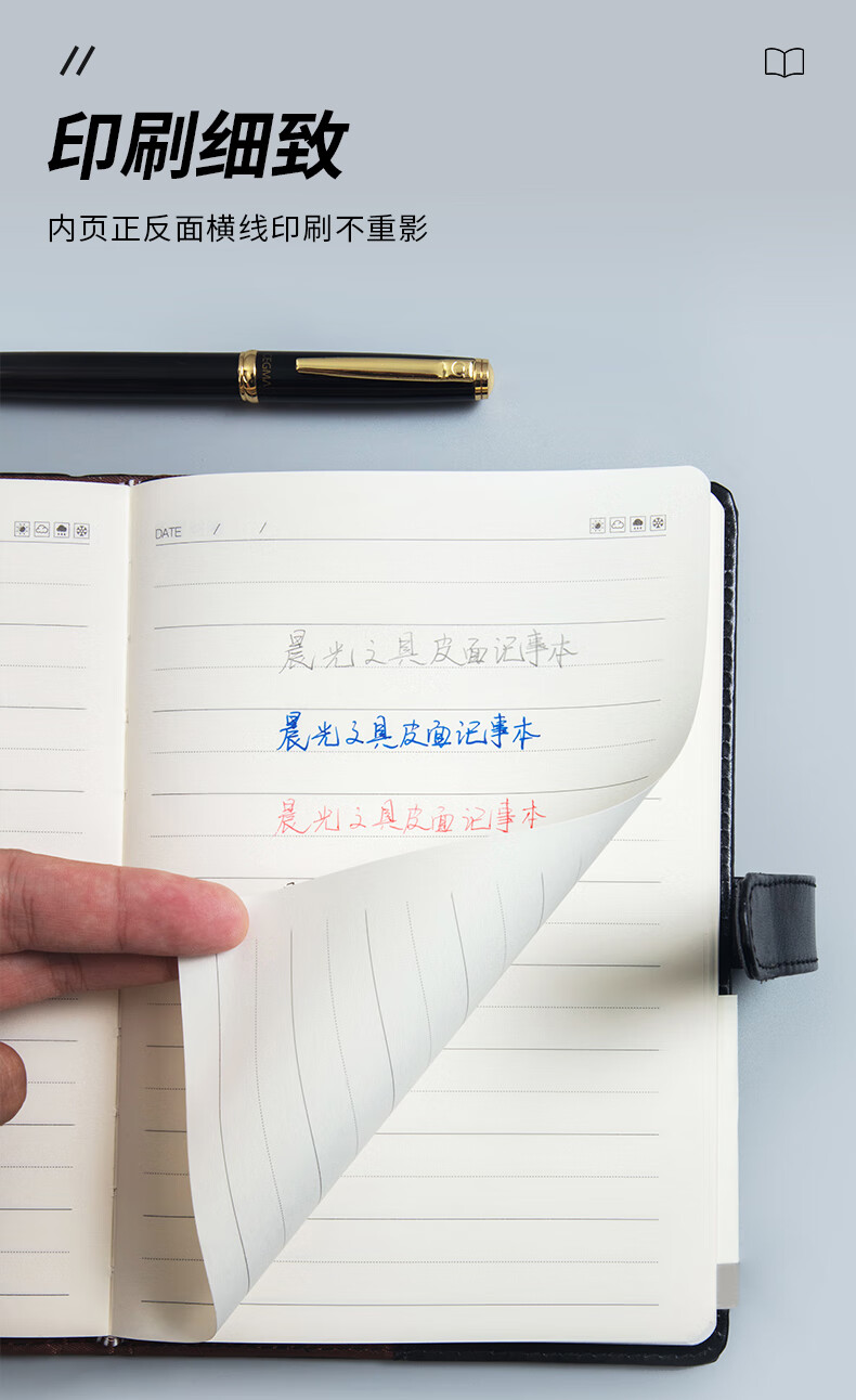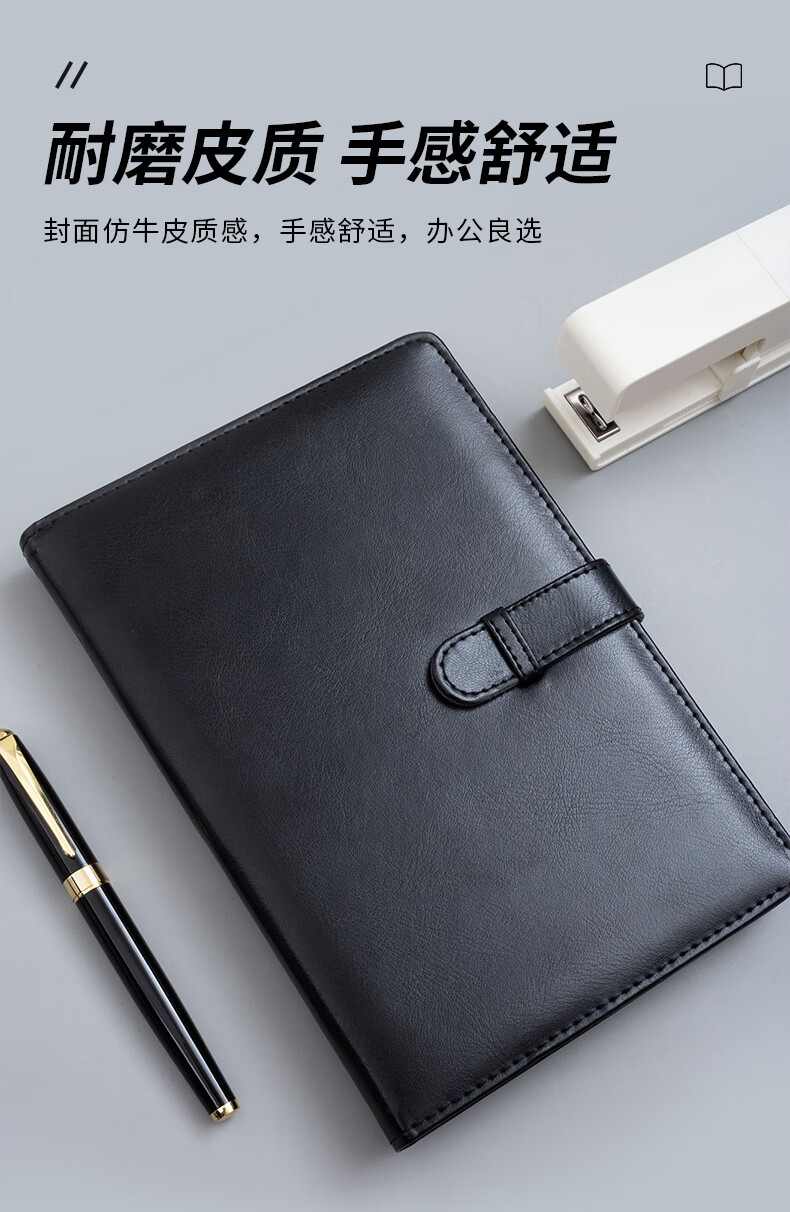 晨光/M&G APYE8T73A 薄本册 黑色软皮革面笔记本本子按扣开会办公用品会议记录本日记本记事本商务A5/25K100张单本