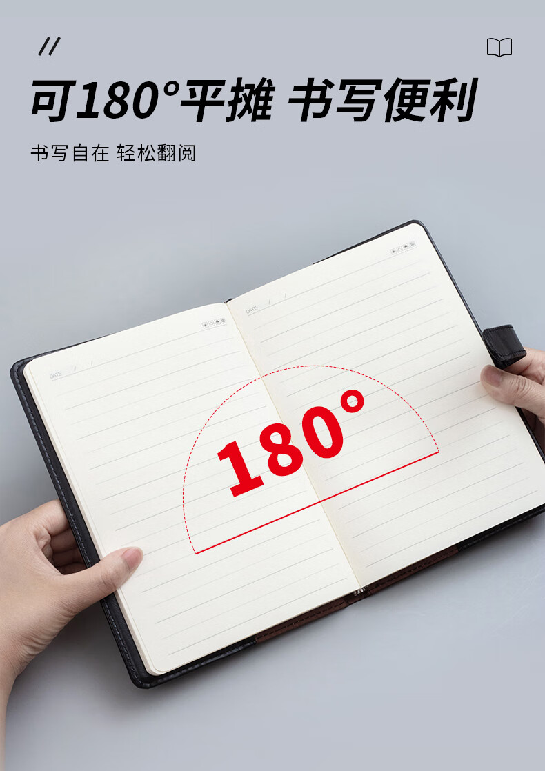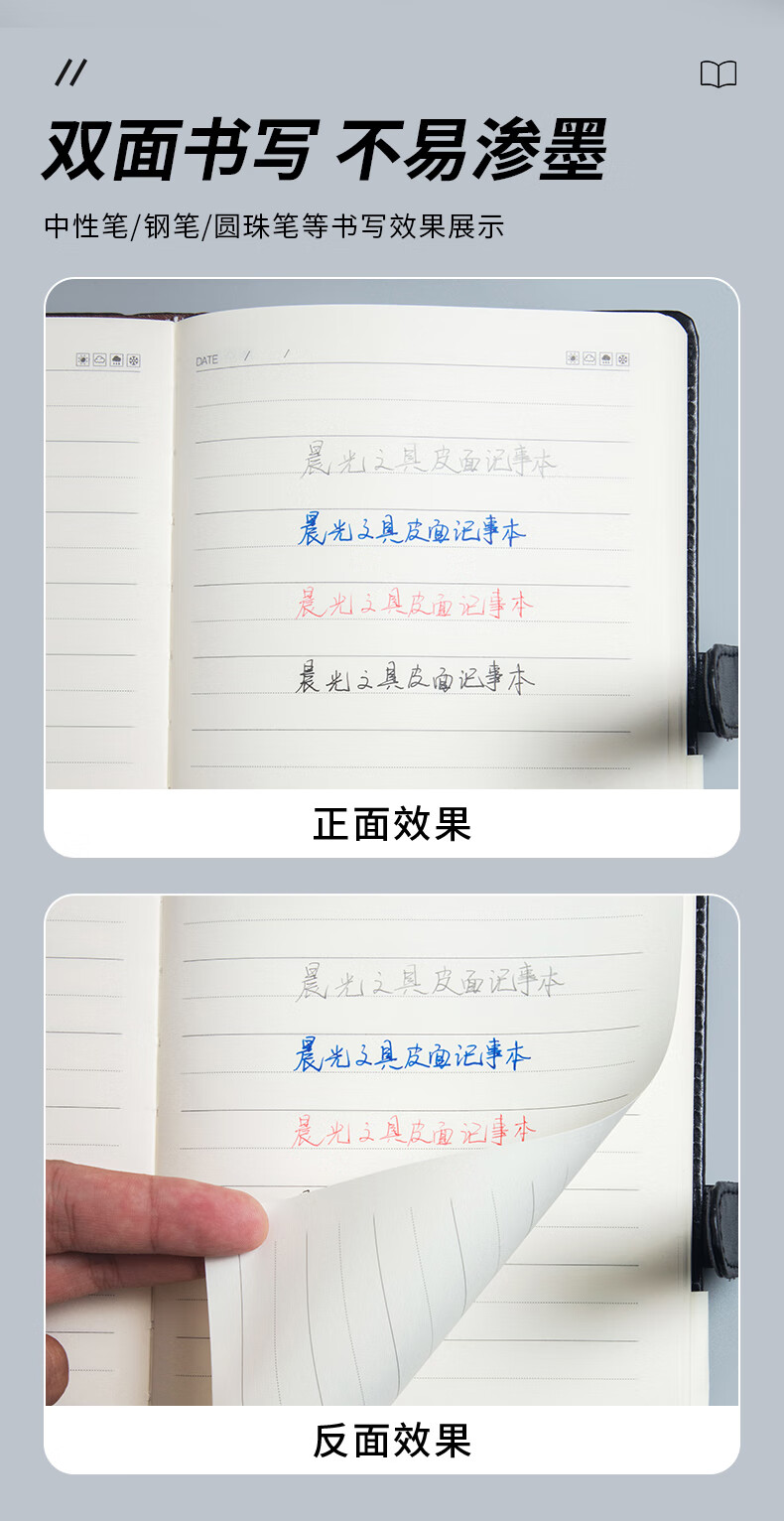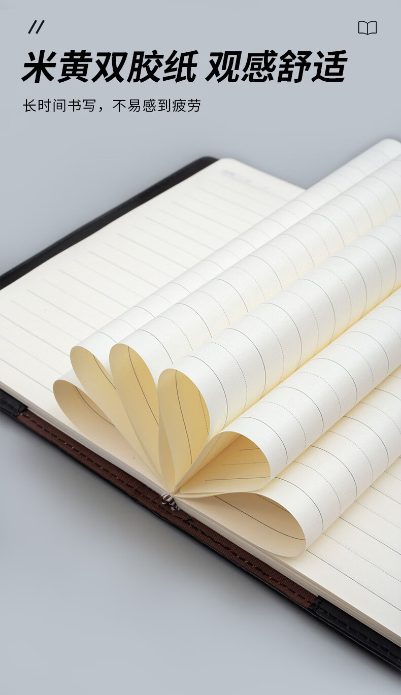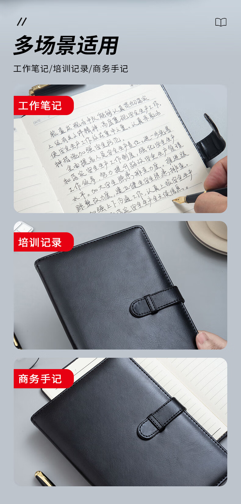 晨光/M&G APYE8T73A 薄本册 黑色软皮革面笔记本本子按扣开会办公用品会议记录本日记本记事本商务A5/25K100张单本