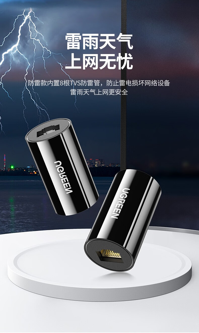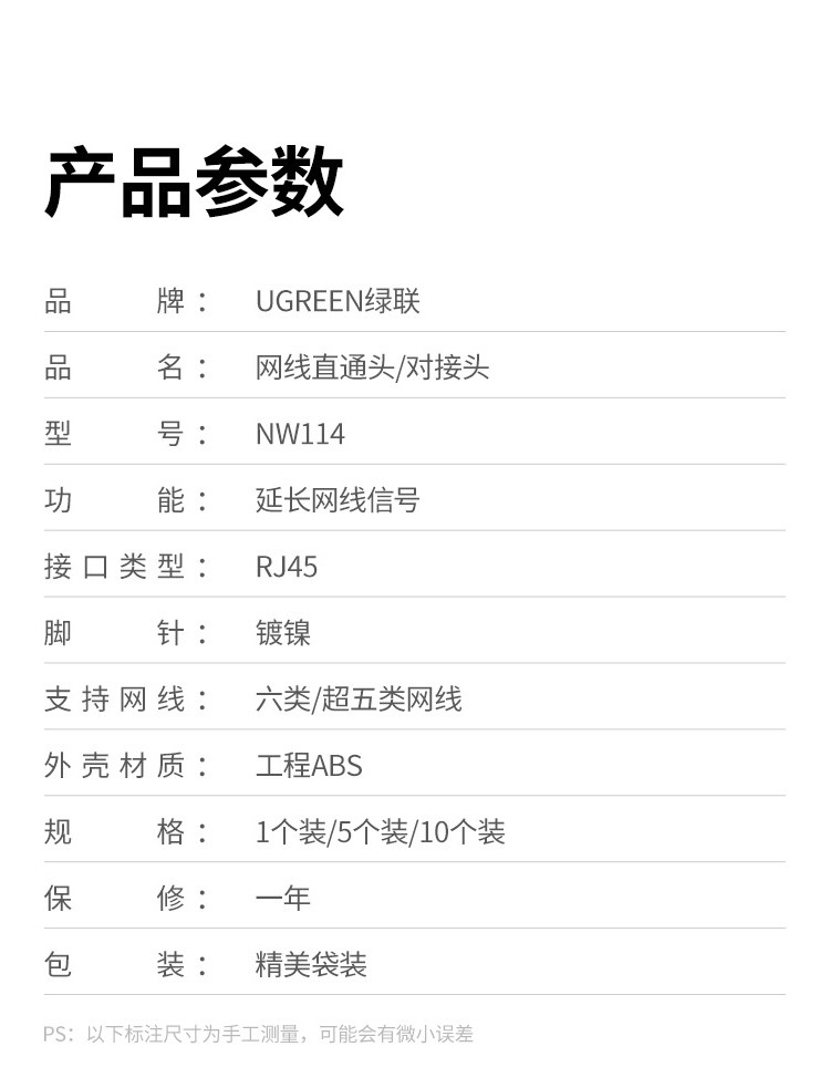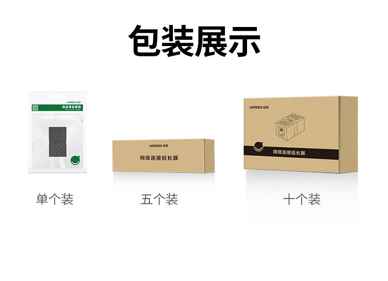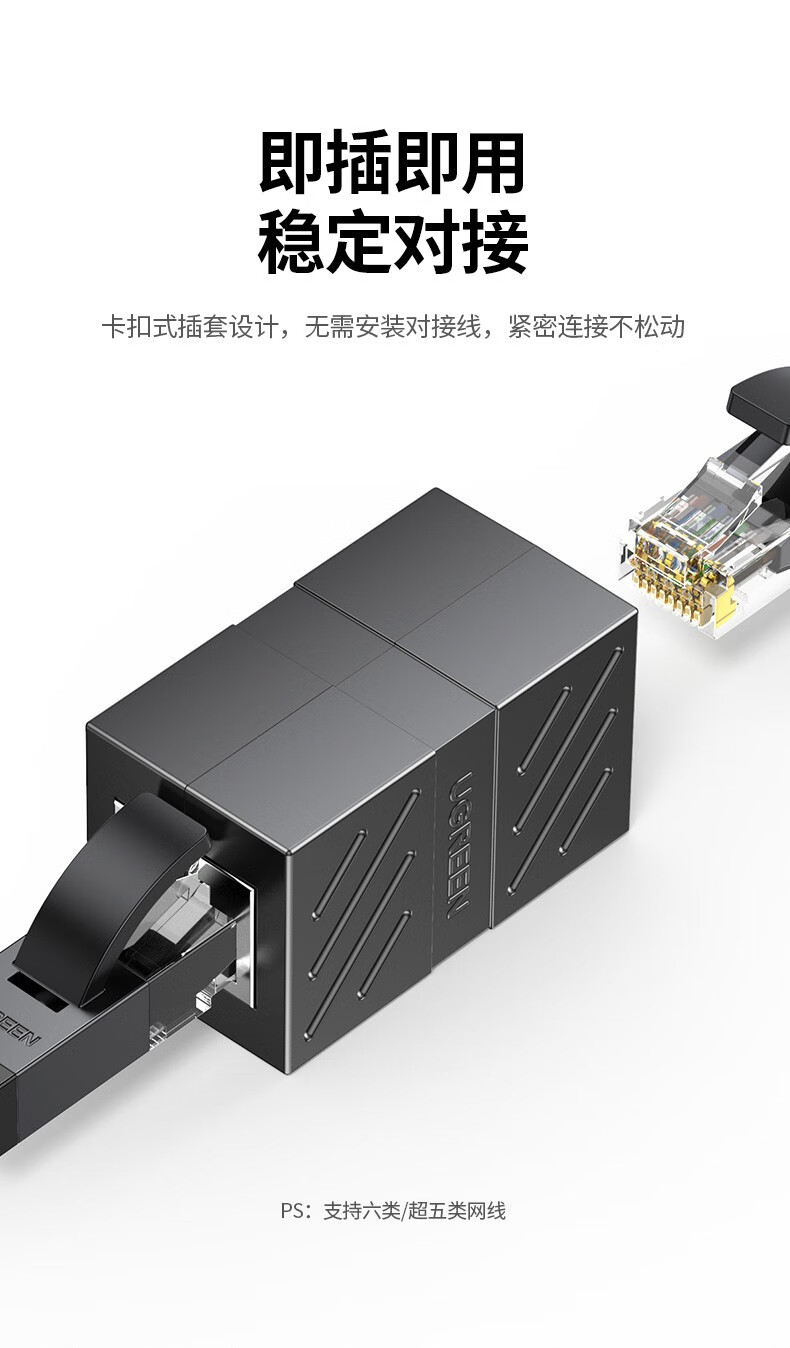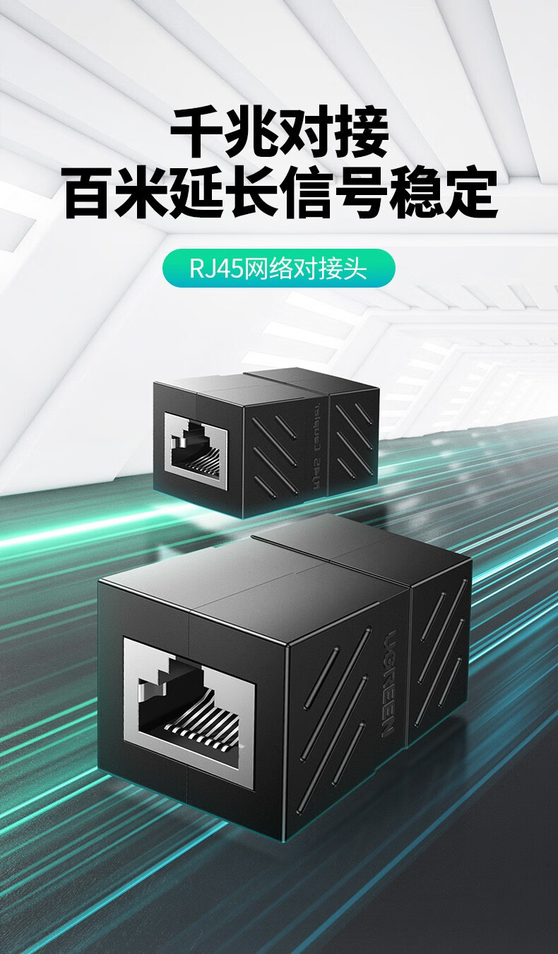绿联/UGREEN 60800 网络连接设备 RJ45网线连接器电脑网线双通头模块直通头水晶头5/6/7类网络连接线延长 黑色【标准款】单个装