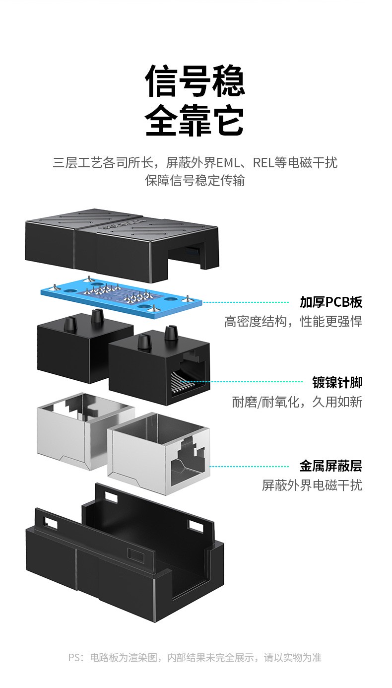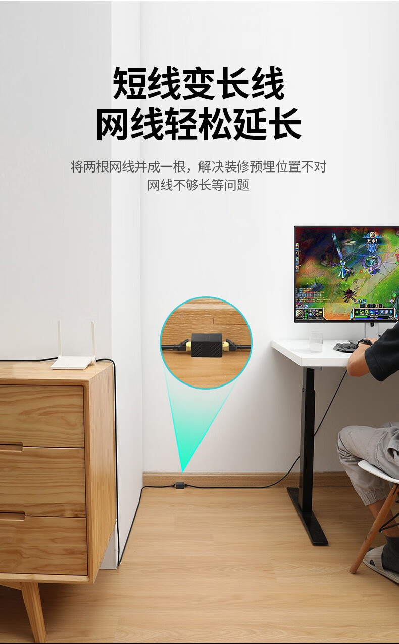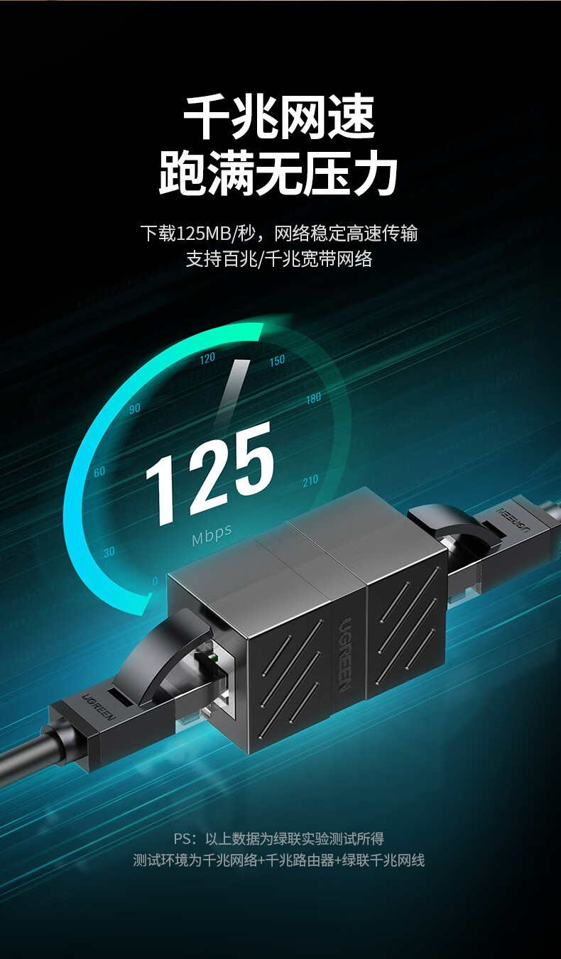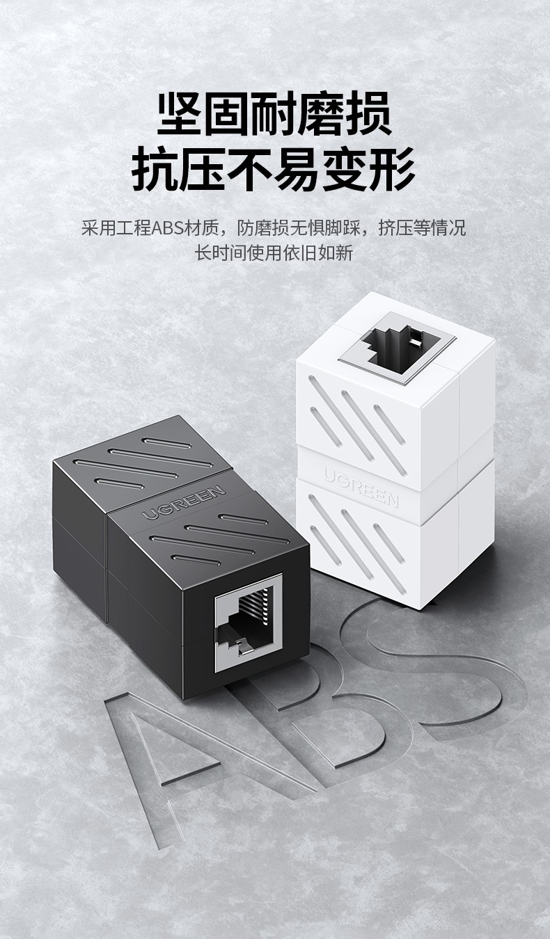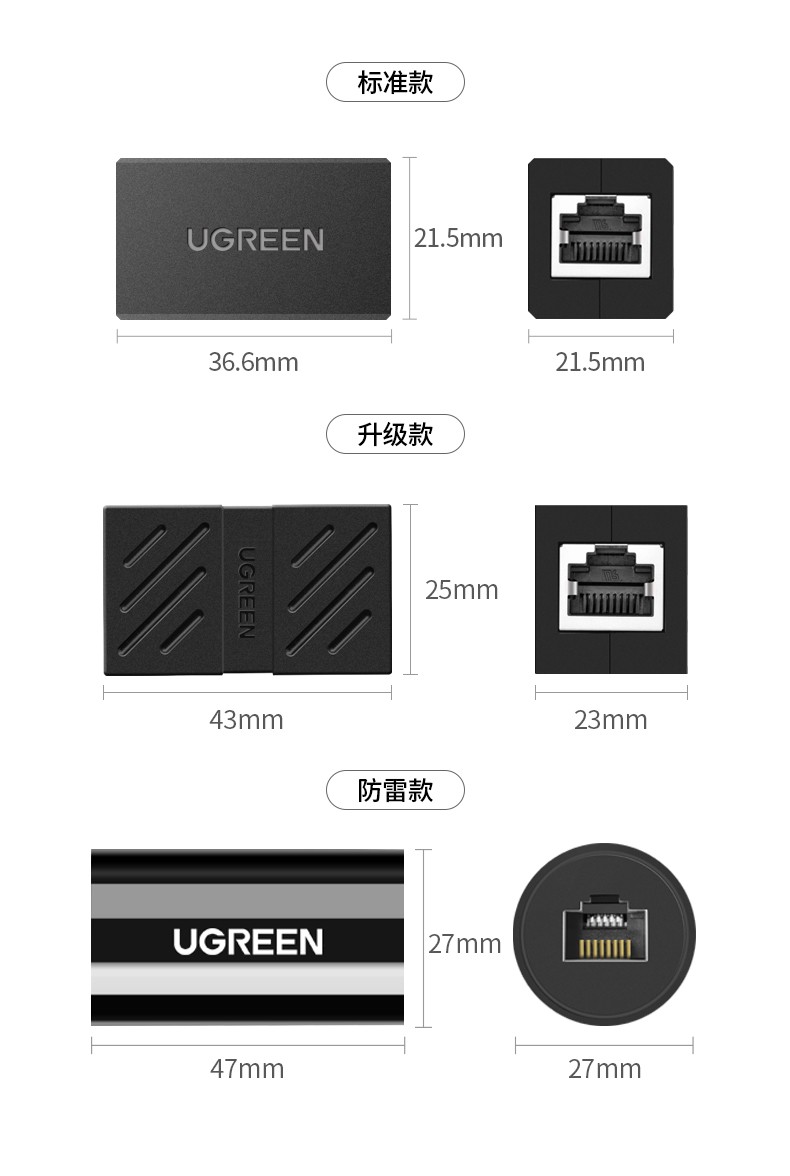 绿联/UGREEN 60800 网络连接设备 RJ45网线连接器电脑网线双通头模块直通头水晶头5/6/7类网络连接线延长 黑色【标准款】单个装