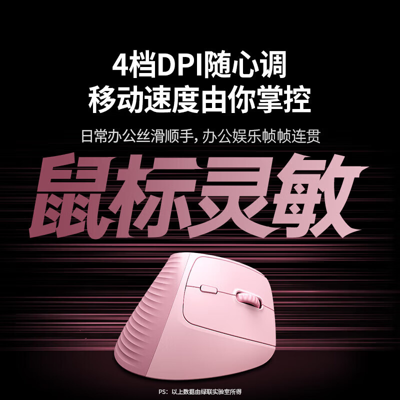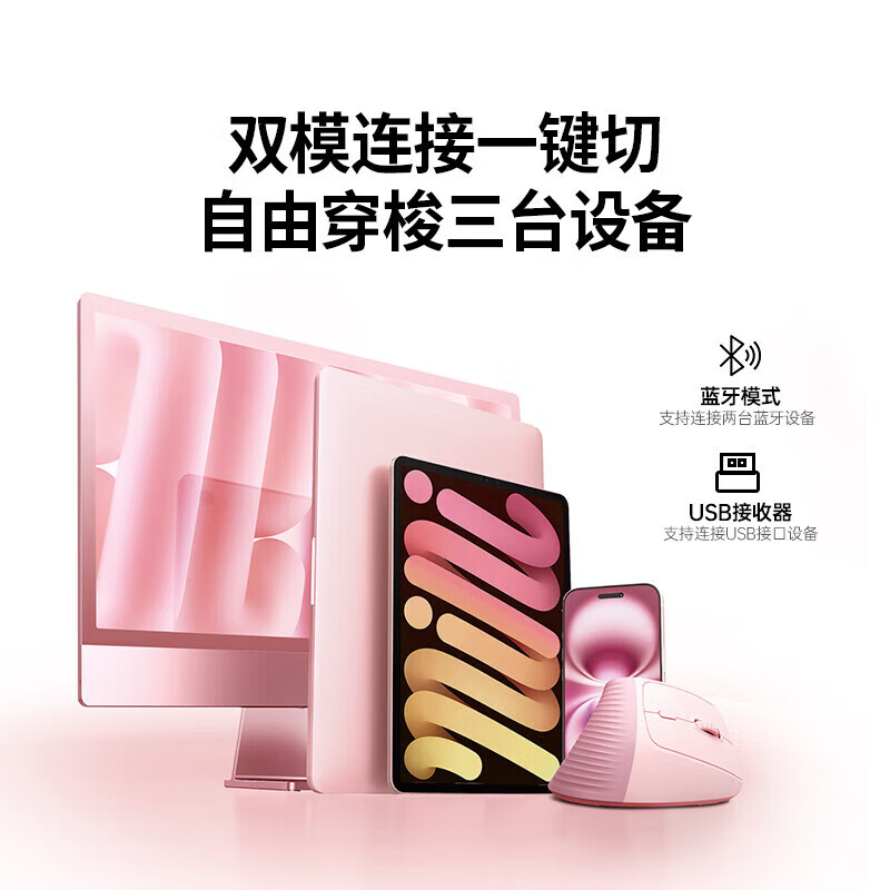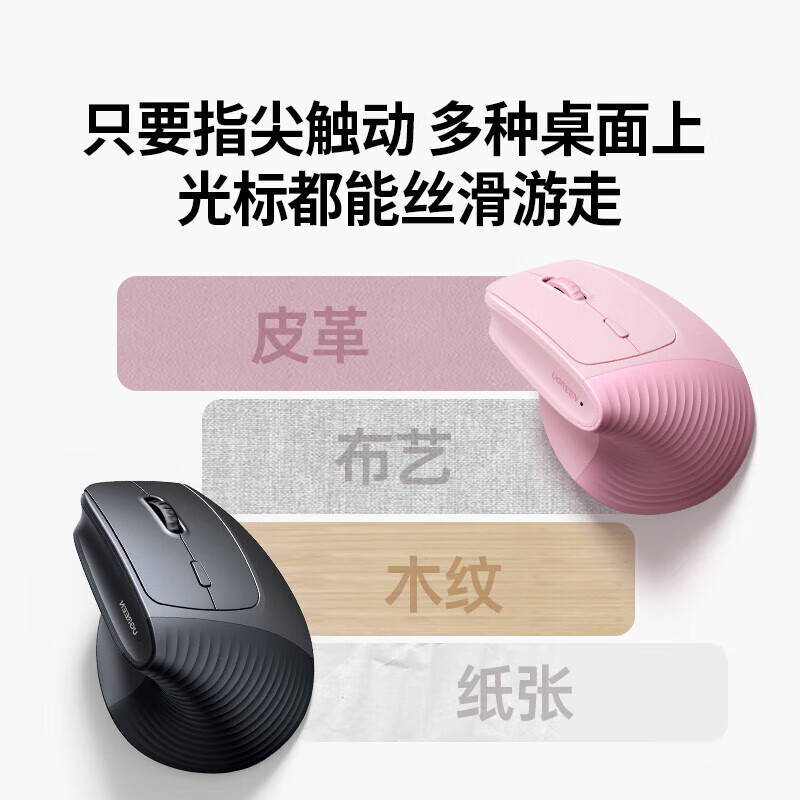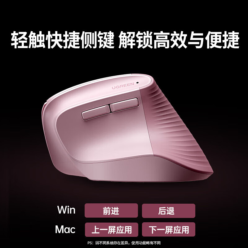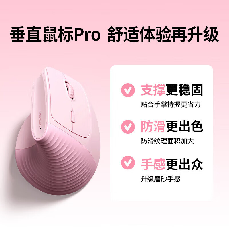 绿联/UGREEN 75634 鼠标 无线蓝牙垂直鼠标护手防鼠标手轻音办公粉色 【无线+蓝牙】双模垂直无线鼠标电池款粉