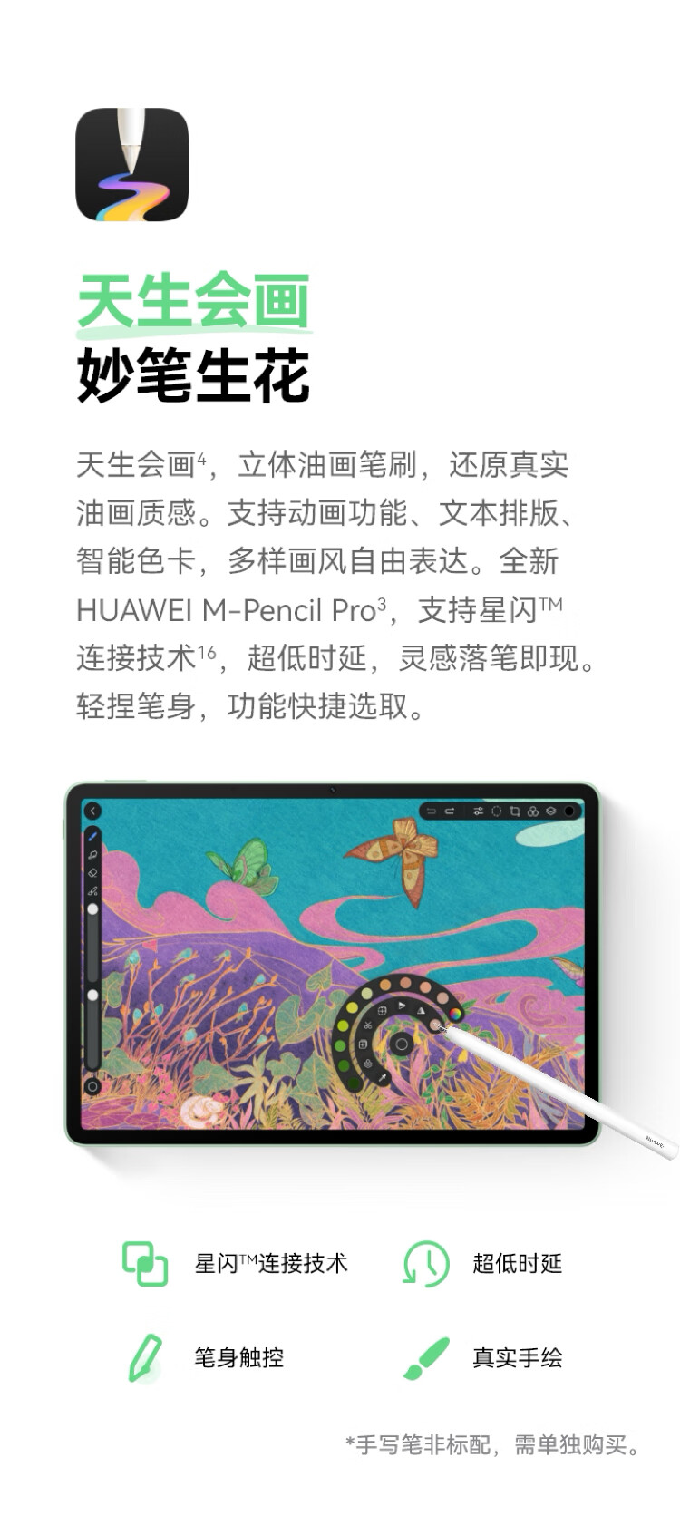 包装清单  :   \"1、平板(内置电池) × 1 2、快速指南(含电子三包凭证) × 1 3、华为SuperCharge充电器(Max 40W) × 1 4、USB Type-C 数据线 × 1
