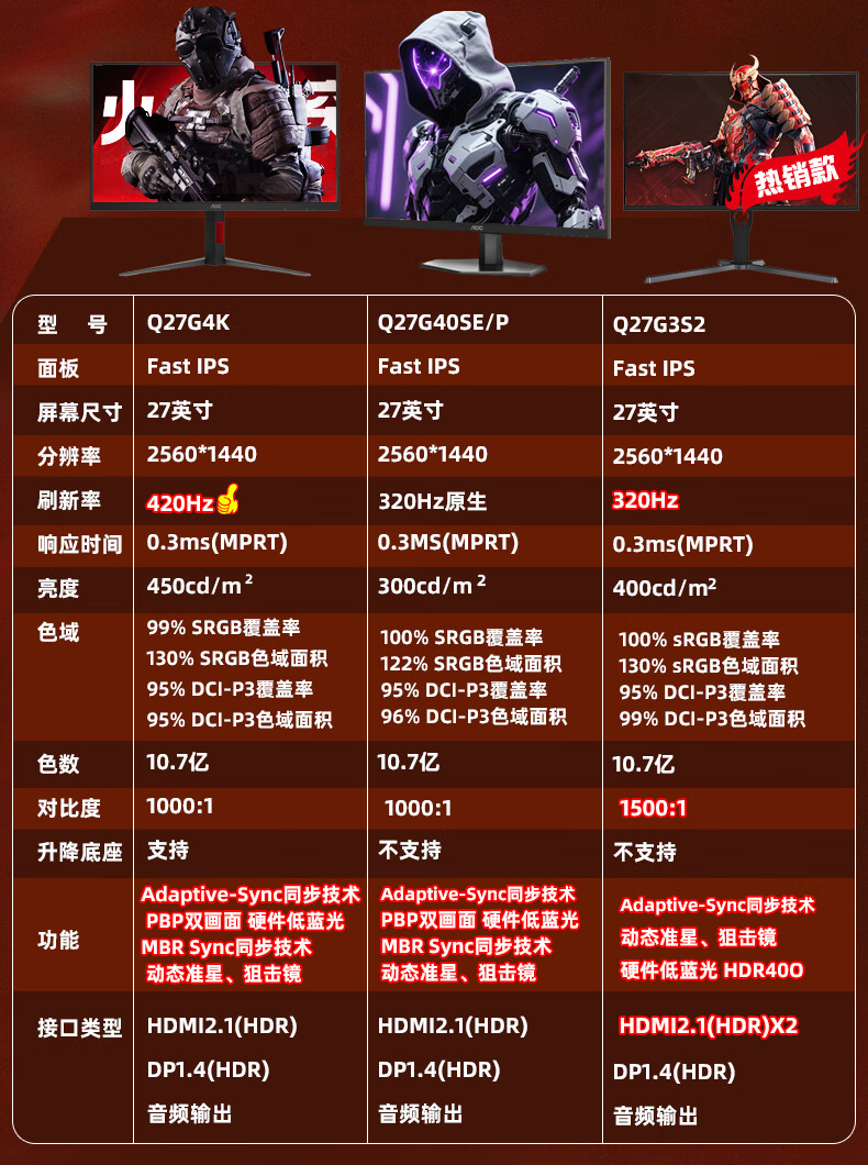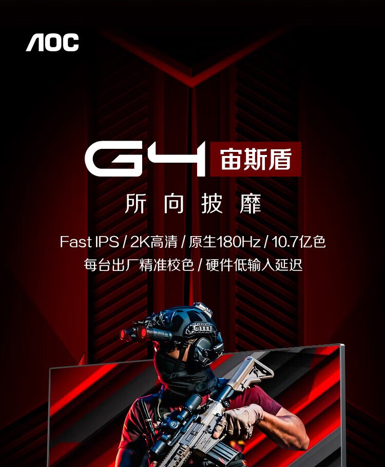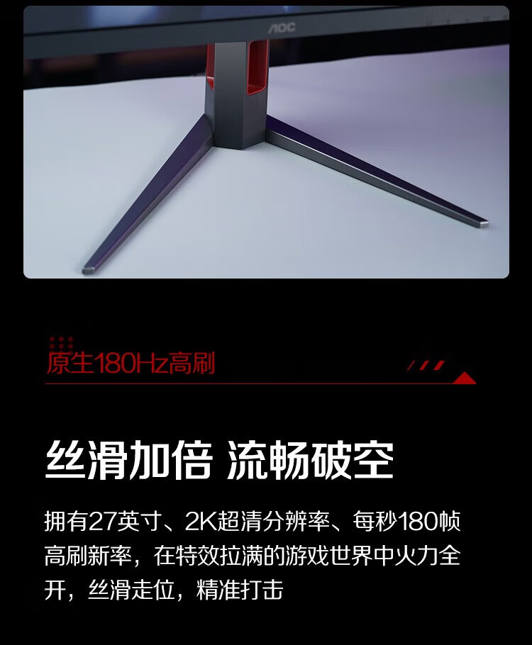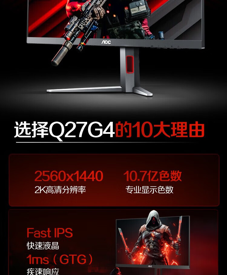 冠捷/AOC Q27G4 液晶显示器 27英寸 2K 快速液晶1ms响应 IPS小金刚 升降旋转 电脑游戏电竞显示器 【火爆推荐】2K 180Hz Q27G4