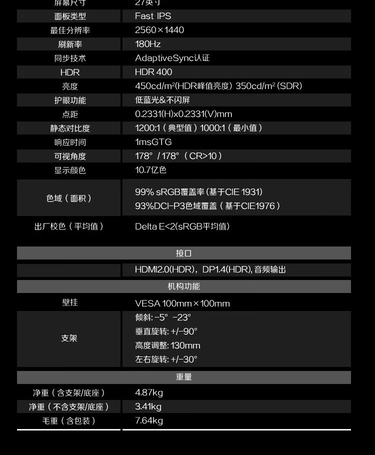 刷新率  :   180Hz