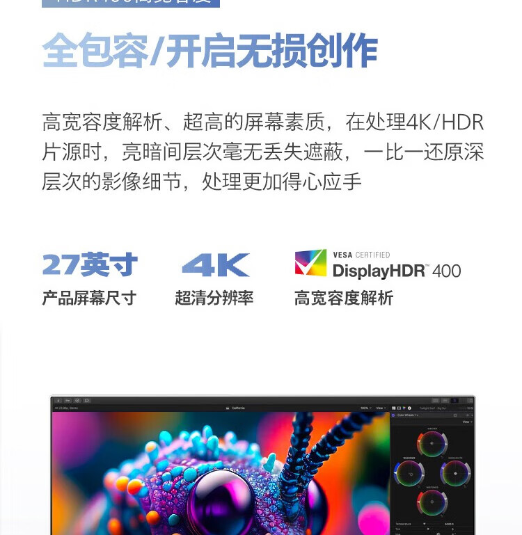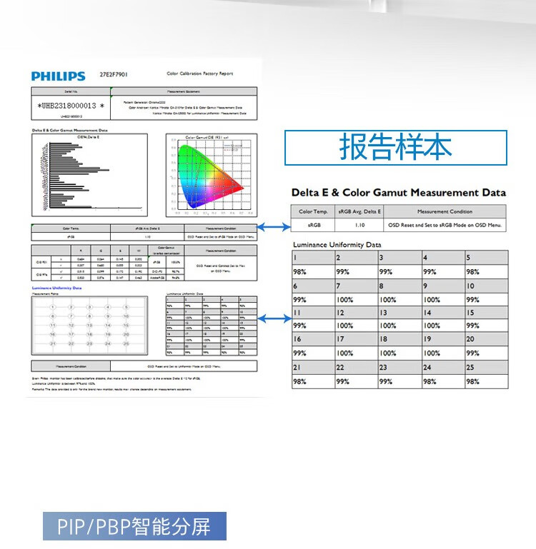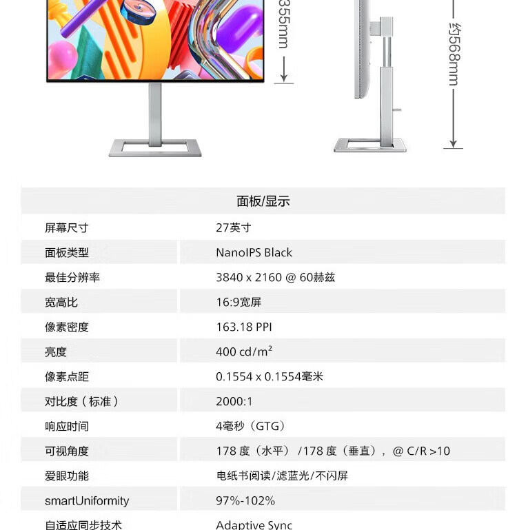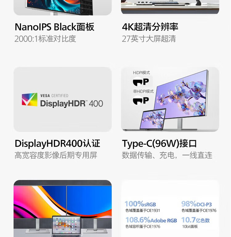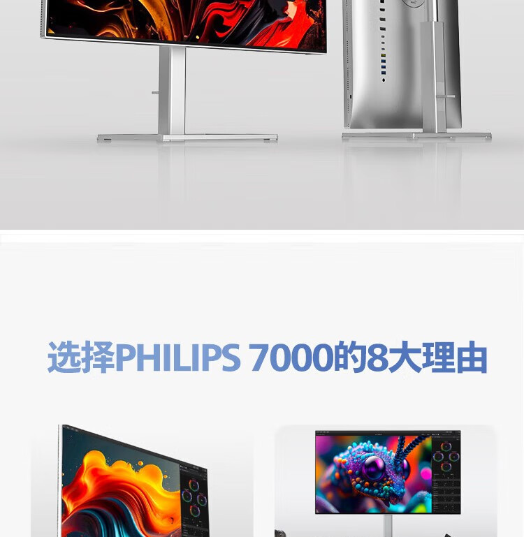 飞利浦/PHILIPS 27E2F7901 液晶显示器 27英寸 4K显示器 NanoIPS-Black TypeC96W 10bit HDR400 出厂校准 硬件防蓝光 设计显示屏 27E2F7901