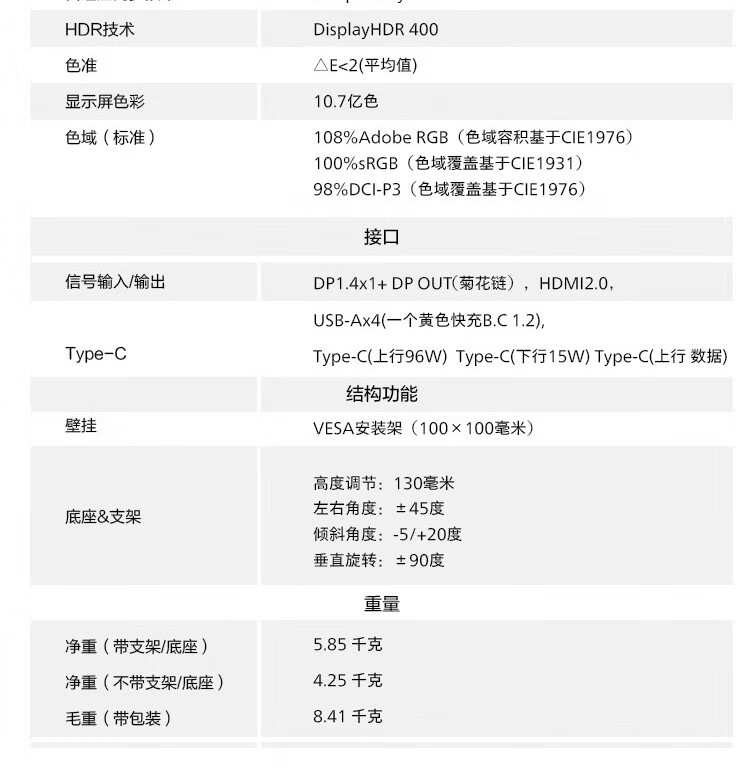 显示器功能  :   升降