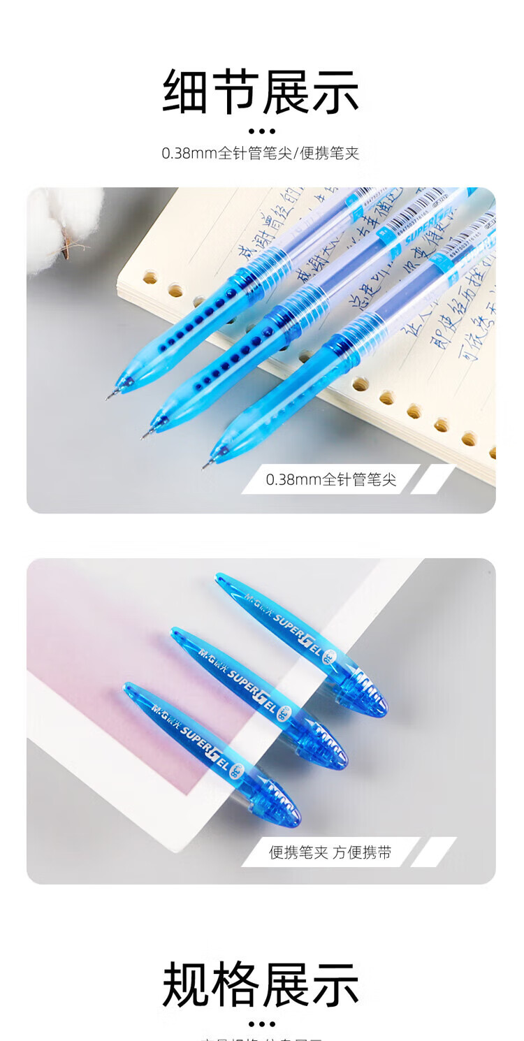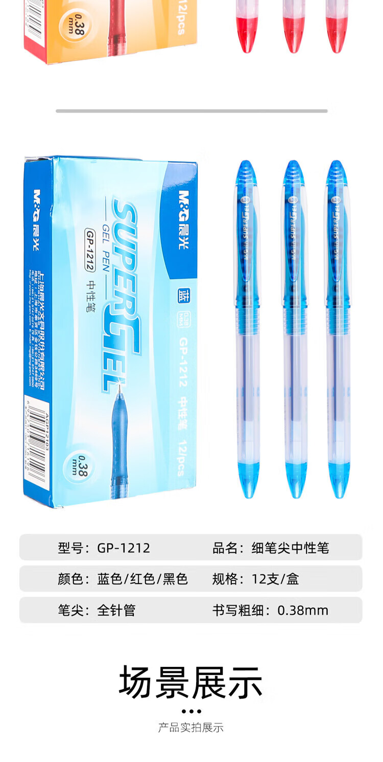 晨光/M&G GP1212B 书写用笔类用具 灵智系列拔盖中性笔0.38mm蓝色全针管签字笔财务中性笔学习办公用水性笔 12支装
