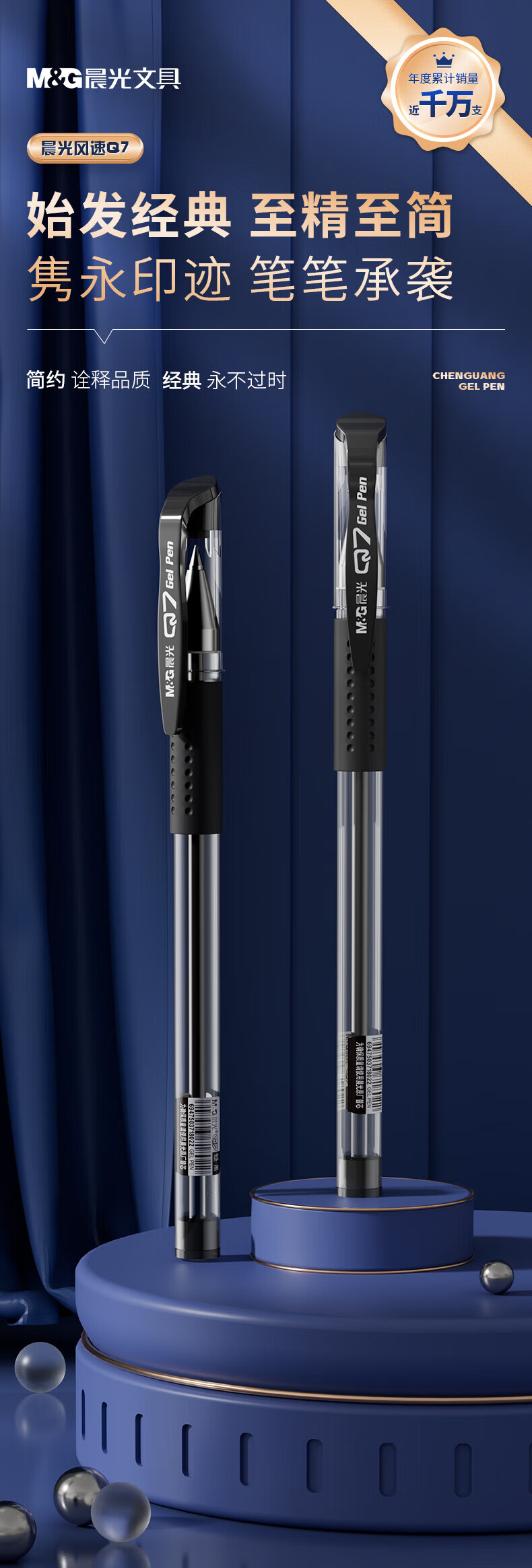 晨光/M&G Q7A 书写用笔类用具 经典风速Q7/0.5mm黑色中性笔子弹头签字笔顺滑拔盖水笔办公用笔12支