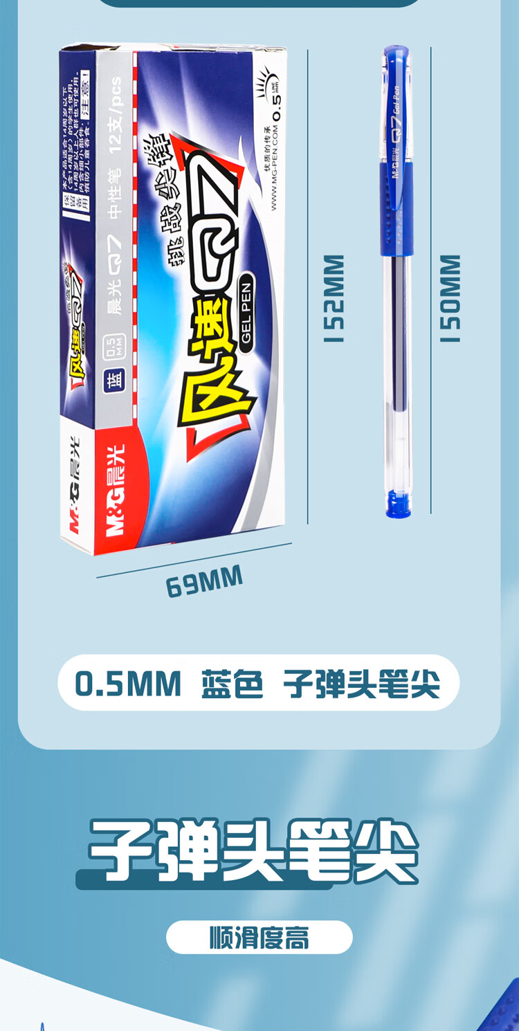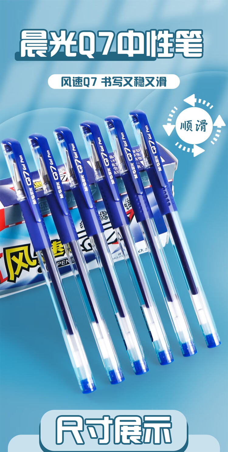 晨光/M&G Q7B 书写用笔类用具 经典风速Q7/0.5mm蓝色中性笔子弹头签字笔顺滑拔盖水笔办公用笔12支