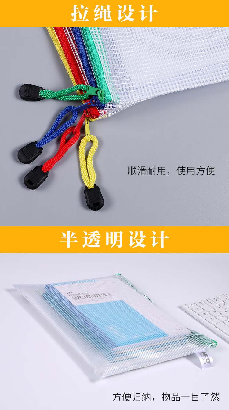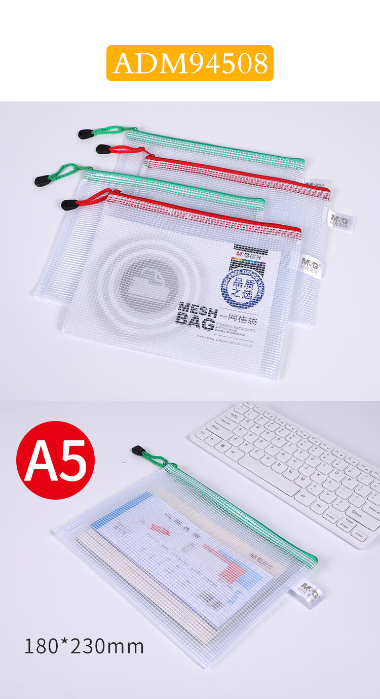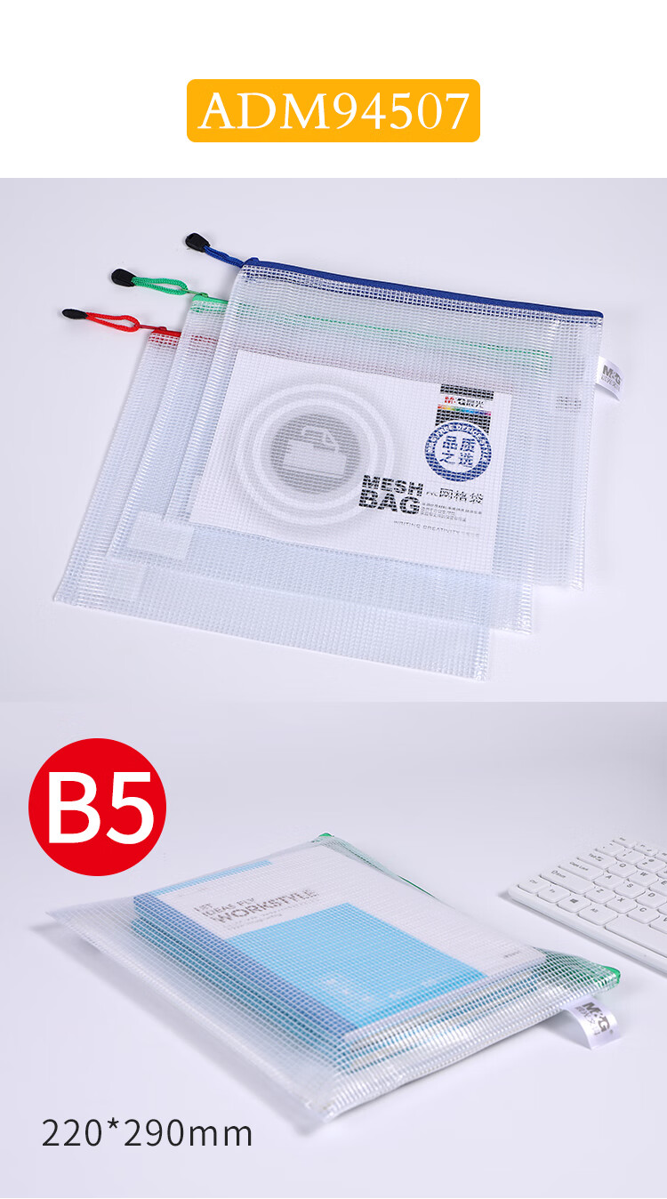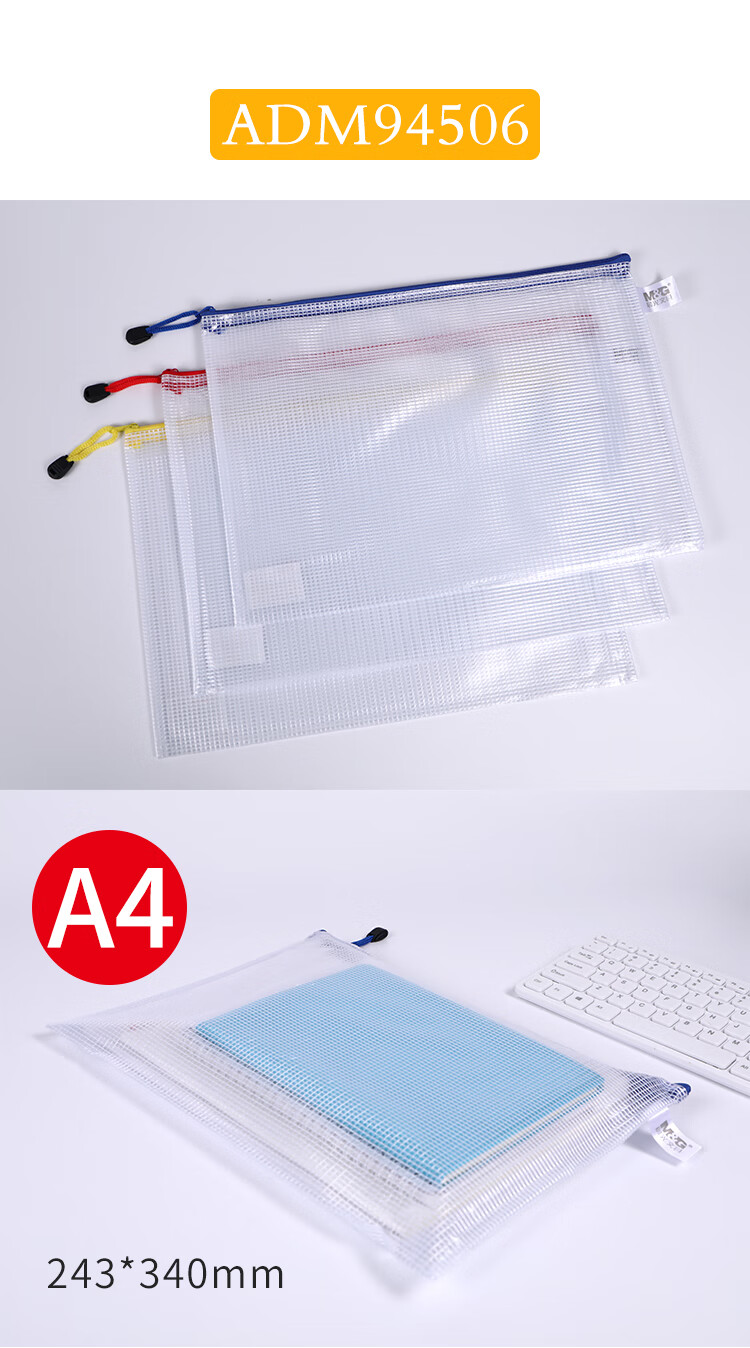 晨光/M&G ADM94507 文件袋 B5文件袋防水拉链袋pvc网格网纹袋票据资料袋颜色随机1包装