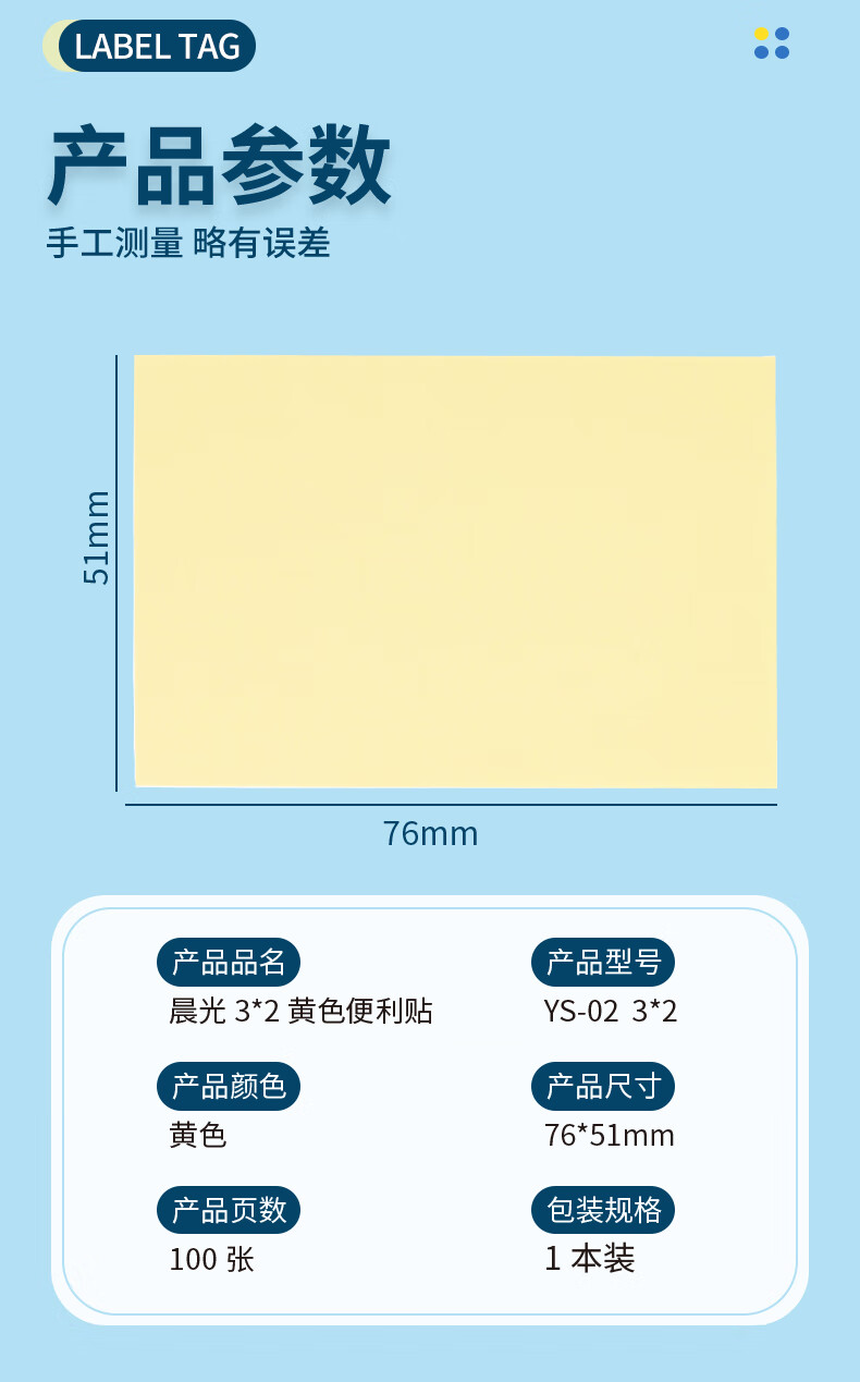 晨光/M&G YS-02 记事贴 文具100张黄色便利贴 76*51mm便签纸n次贴便签贴 记事贴留言贴记事本子