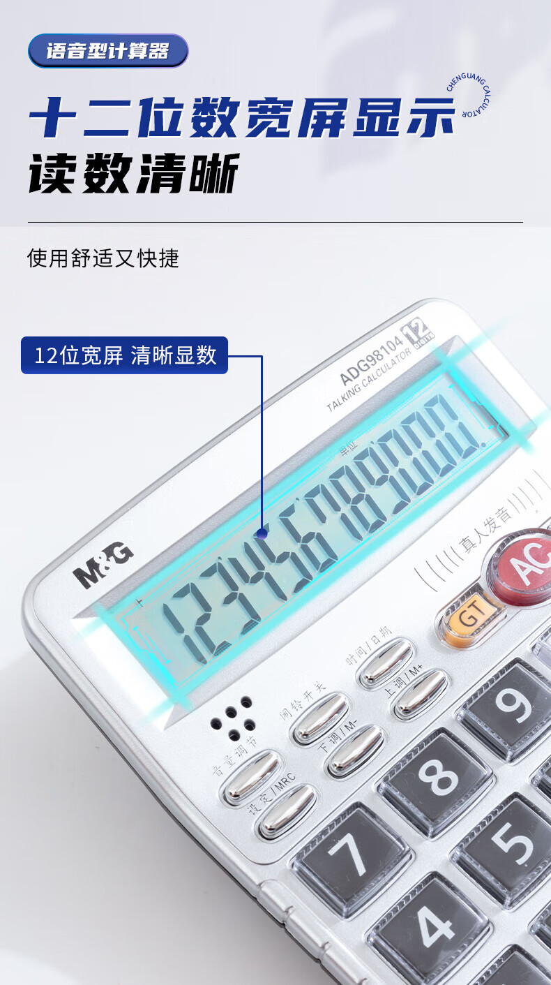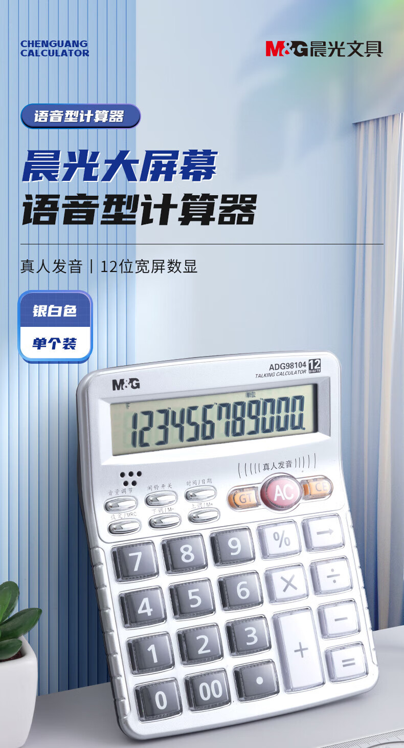 晨光/M&G ADG98104 电子计算器 12位显示语音计算器桌面办公计算机学生办公通用屏幕计算器银色ADG98104 1个装